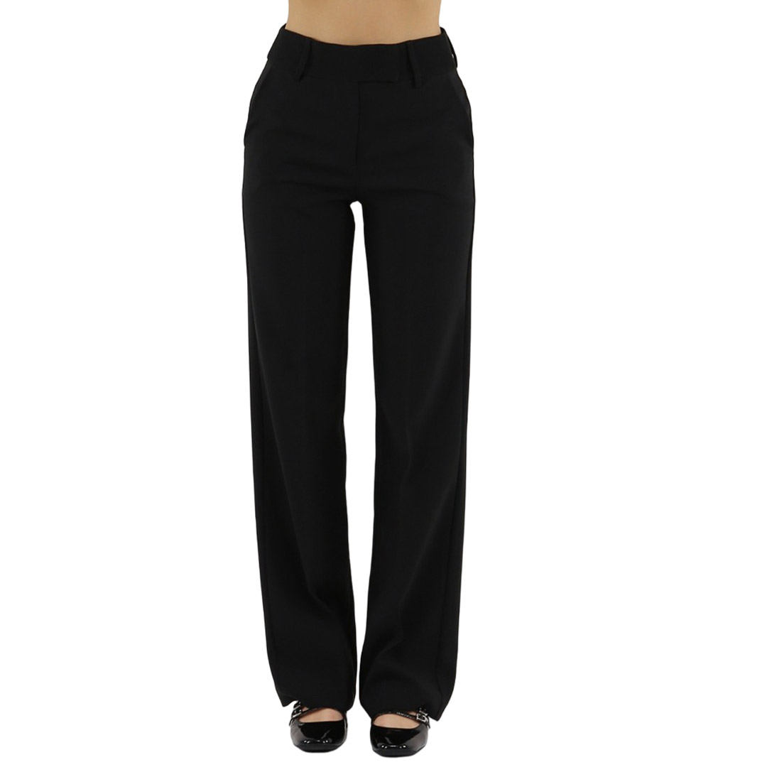 Stile minimal e linea dritta caratterizzano questi pantaloni da donna con chiusura nascosta. Eleganti e versatili da abbinare.