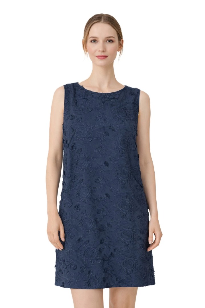 L'abito a tubino non è mai stato così elegante. I ricami a filo con effetto tridimensionale aggiungono matericità e dettagli raffinati, che rendono speciale un design votato alla semplicità. Abito in popeline di cotone ricamato Fit regolare Scollo stondato con bottoni a vista sul retro Modello smanicato Motivo di ricami a filo con effetto tridimensionale su tutto il capo