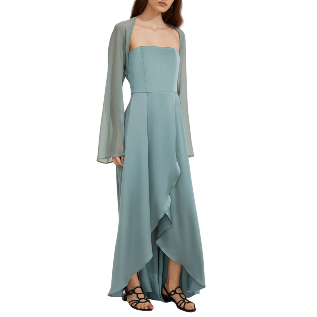 Eleganza senza compromessi: questo è l'abito ideale per le tue occasioni speciali. Con bustino aderente e linea a portafoglio aperto sulla gonna, mette in risalto il décolleté e si completa facilmente con stiletto e pochette scintillanti. Capo appartenente al progetto "Save the date: Celebrate!" Abito in raso tecnico Fit aderente sul bustino e svasato sulla gonna Bustier aderente con imbottitura interna, scollo dritto e zip posteriore Gonna a portafoglio con pannello sovrapposto e stondato Fondo asimmetrico