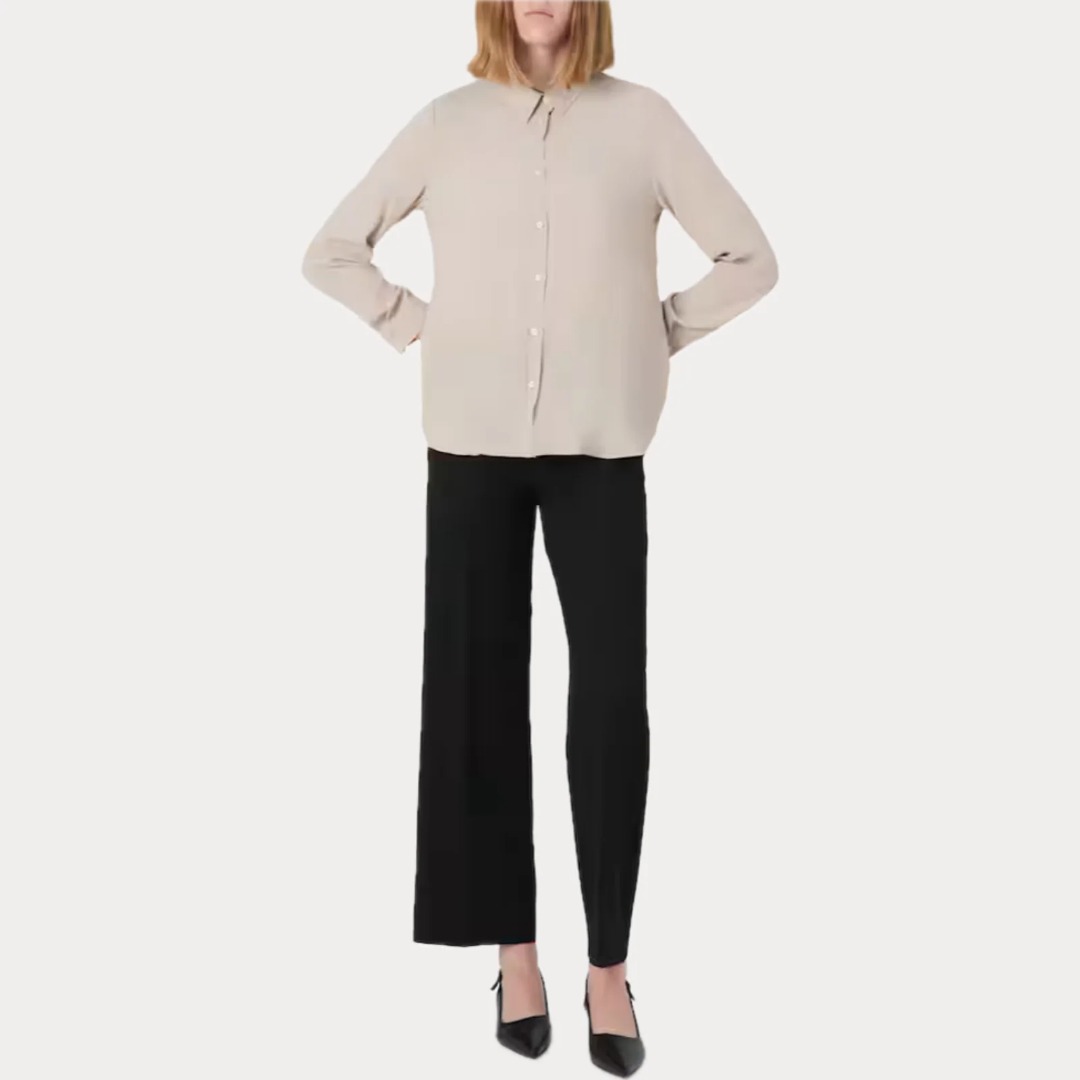 Nuova edizione della classica camicia femminile, in preziosa crêpe de Chine di misto seta. Essenziale nelle linee, ha tutta la versatilità che serve per accompagnarti dall'ufficio all'aperitivo. Tessuto principale contenente materie prime derivanti dalla cellulosa del legno, fibra ricavata nel rispetto del patrimonio forestale Camicia in crêpe de Chine di misto seta Fit dritto Collo a camicia con abbottonatura a vista Maniche lunghe con bottoni al polso