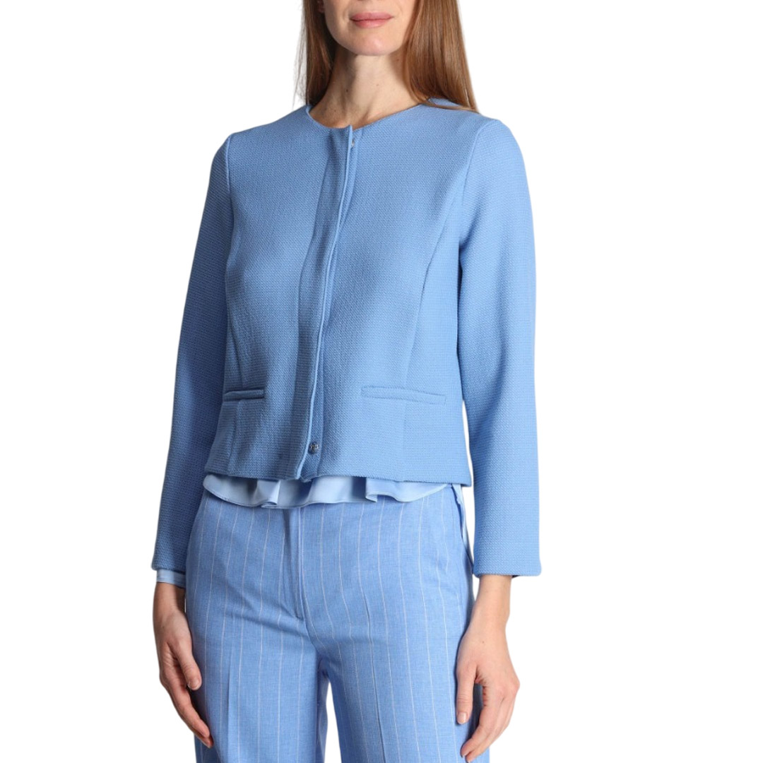 Le caratteristiche della blusa includono il crêpe de Chine di misto seta, leggero e traspirante, un fit morbido per una vestibilità confortevole e femminile, uno scollo stondato che valorizza il décolleté con discrezione e maniche corte per un tocco fresco e contemporaneo