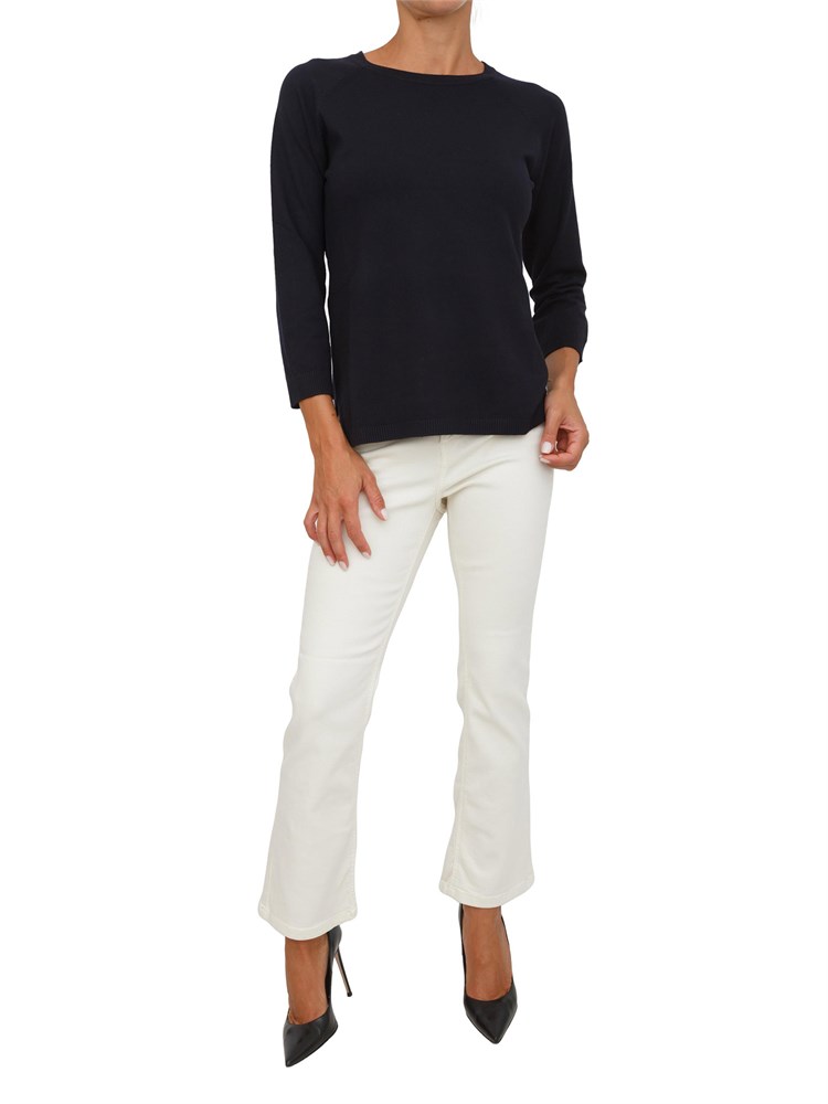 Maglia "Ginetta" in filato di misto viscosa stretch dal fit dritto. Modello con scollo a barca, maniche a tre quarti con taglio raglan e fondo asimmetrico rifinito con dettaglio a costine. Versatile e confortevole per look quotidiani.