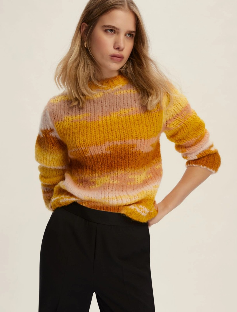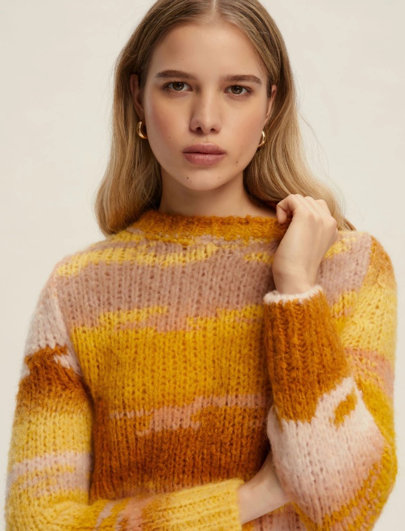 Lasciati avvolgere dal calore cocoon di questa maglia in misto lana e alpaca. Il filato fantasia crea morbide onde tridimensionali, che giocano con le linee decise del fit. Indossala con i denim o i jogger per le tue giornate off duty. Maglia in filato di misto lana e alpaca fantasia Fit boxy Scollo a giro Dettaglio a costine su collo, polso e fondo capo