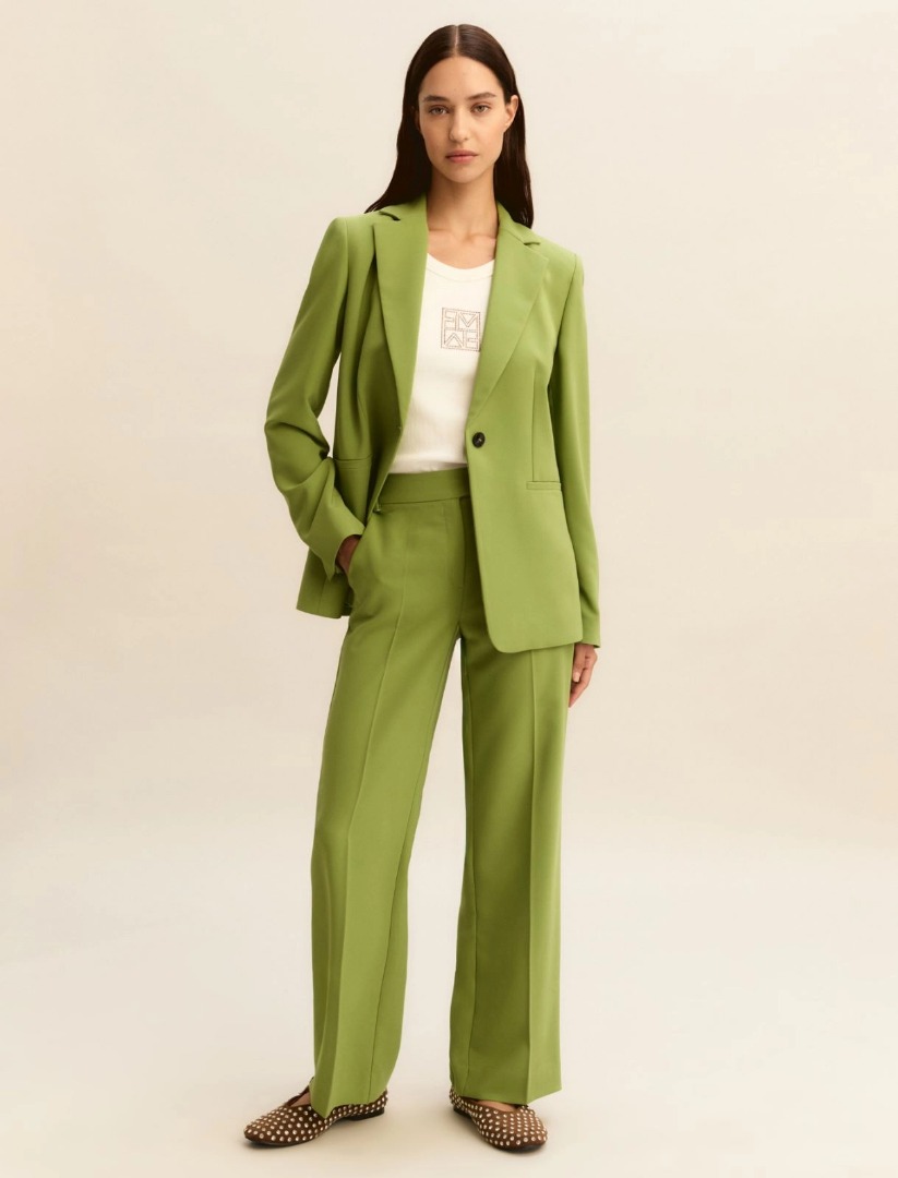 Un vero passepartout, da abbinare a camicia in popeline o alle bluse più femminili? E' il pantalone dritto in tessuto stretch, con piega stirata per una silhouette slanciata. Pantalone in tessuto fluido bistretch Fit regolare Chiusura con bottone a vista Tasche laterali alla francese e pince posteriori Piega stirata fronte e retro