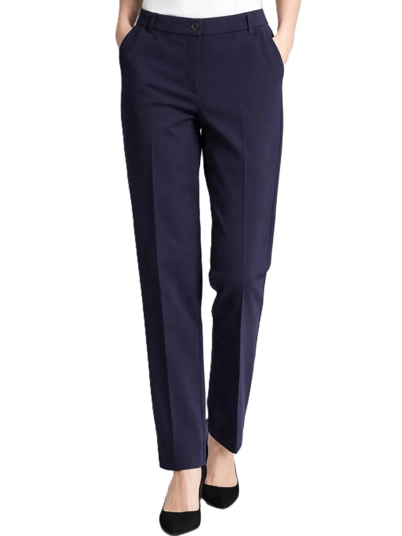 Pantalone lungo in twill leggero elasticizzato Gamba dritta Chiusura frontale con zip e bottoni Tasche laterali funzionali Vestibilità confortevole e linea pulita