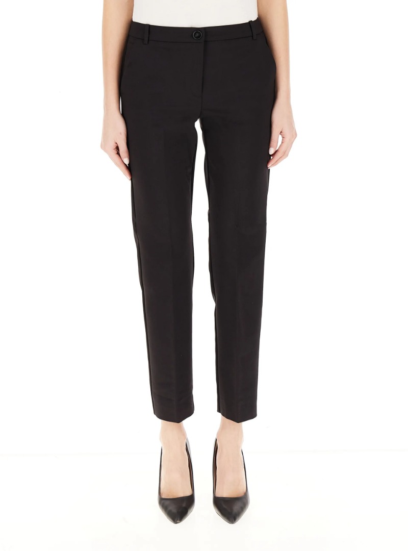 Leggeri e stretch, i pantaloni slim fit slanciano la silhouette e regalano un'immediata allure primaverile. Scopri le nuove nuance e gioca con gli abbinamenti dei top. Pantalone in doppio di misto cotone stretch Fit slim Chiusura con bottone a vista e zip nascosta Tasche laterali alla francese e posteriori a filetto Piega stirata fronte e retro