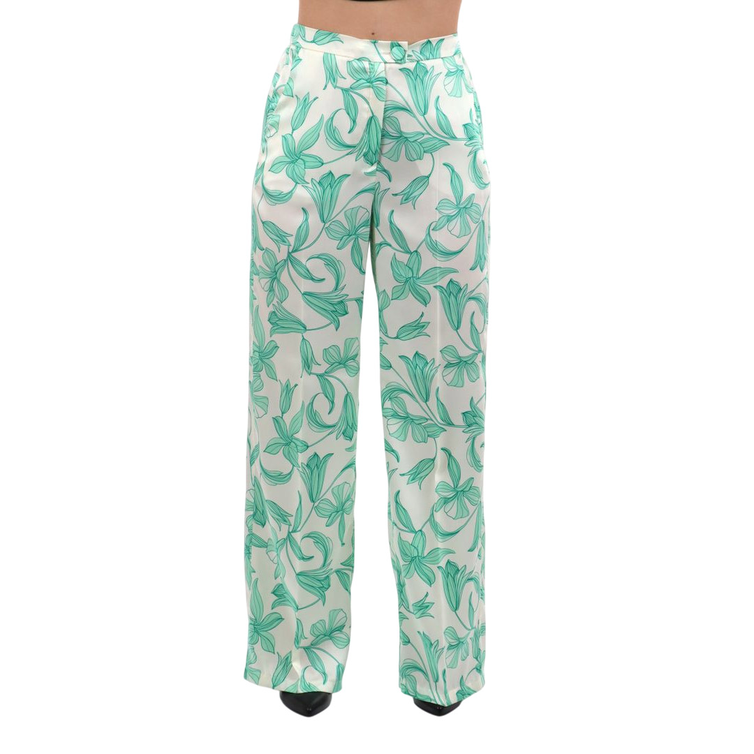 Fiori e foglie, in un'elegante combinazione colorata, sono i protagonisti di questo pantalone dritto in twill. L'elastico posteriore e la piega stirata ne fanno un must have dalla versatilità sorprendente. Il poliestere che compone questo articolo è riciclato, con fibra proveniente dal riciclo di materiale plastico Pantalone in twill tecnico stampato Fit dritto Chiusura con bottone ricoperto e zip nascosta Inserto elastico sul retro della vita Piega stirata davanti e dietro e tasche laterali alla francese