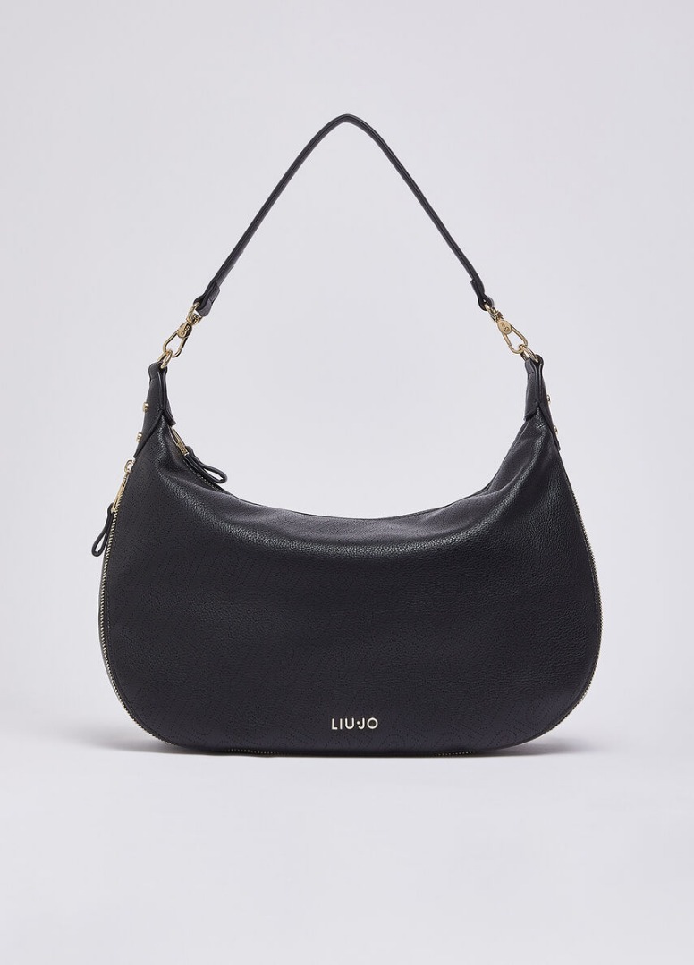 Misure: 39 x 10 x 30 cm Borsa nera hobo grande Effetto bottalato e laserato con logo Scomparto centrale chiuso con zip Fodera interna con tasche Logo lettering Tracolla in abbinamento
