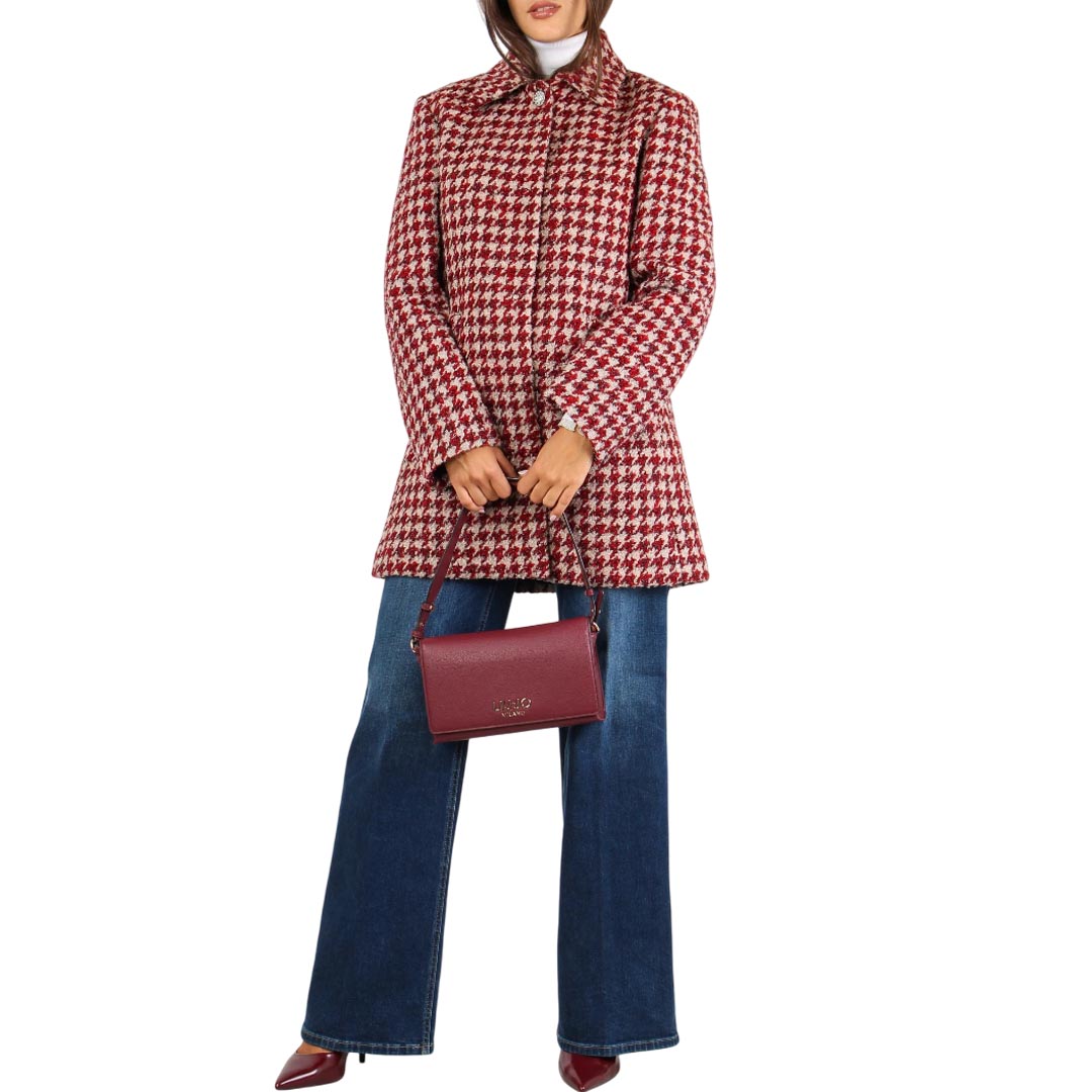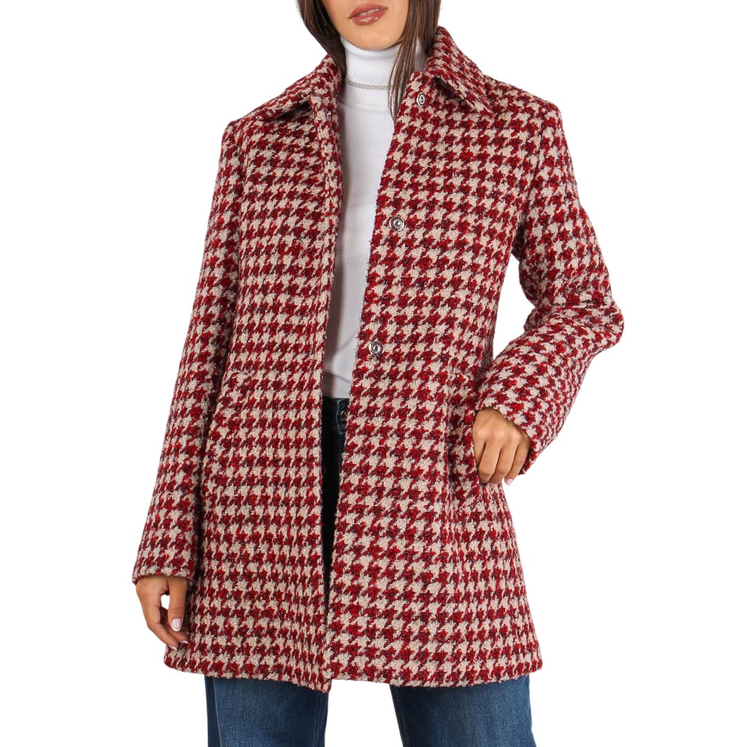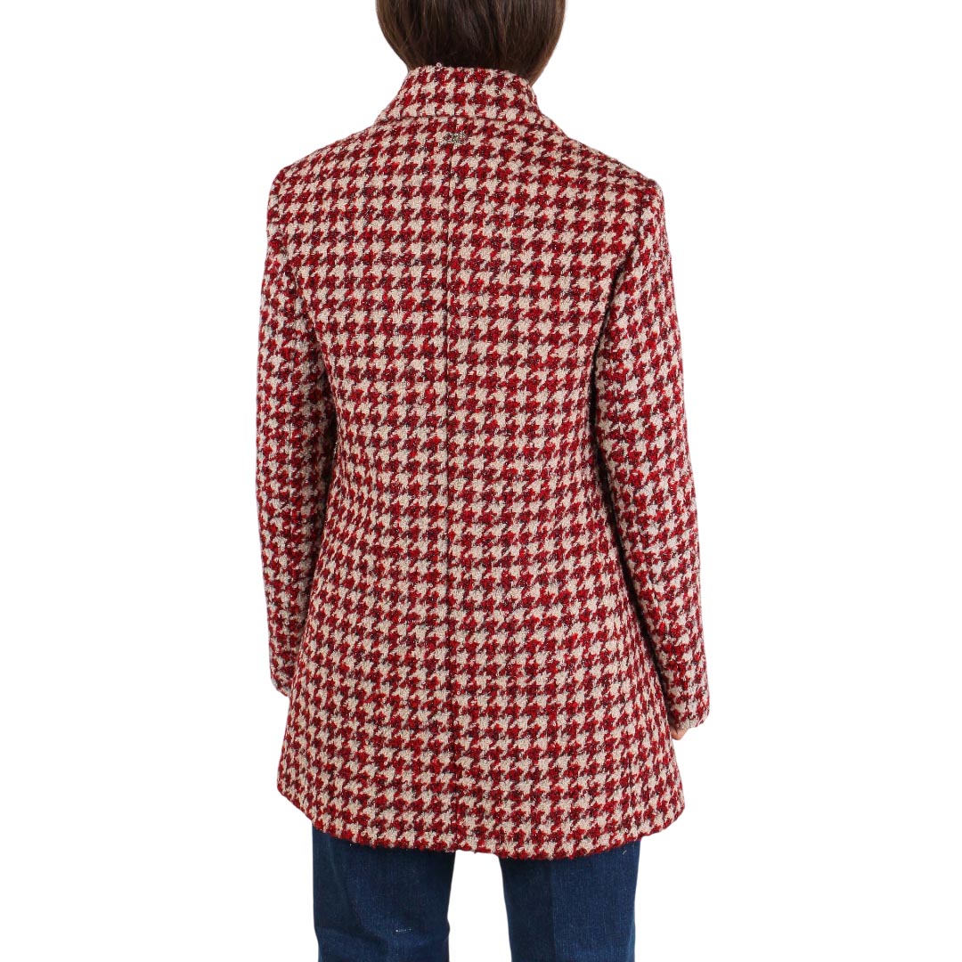 Cappotto Liu Jo da donna in tessuto misto con motivo pied de poule rosso e bianco. Linea elegante e raffinata, arricchita da bottoni gioiello sul davanti. Dotato di tasche laterali e fodera interna, è il capo ideale per dare un tocco sofisticato ai tuoi outfit autunnali e invernali.