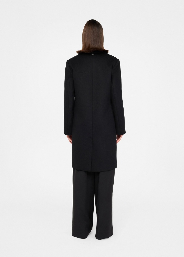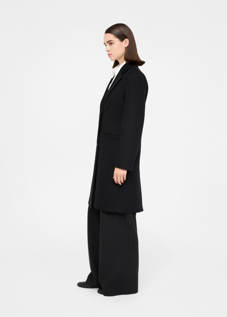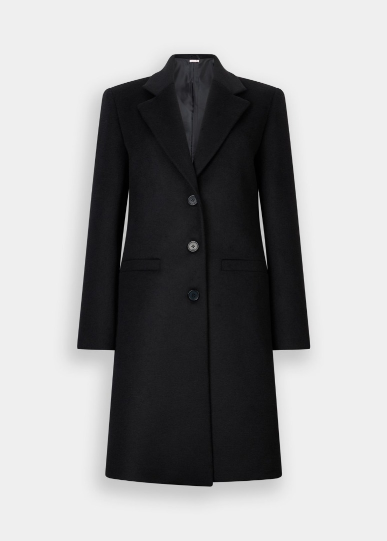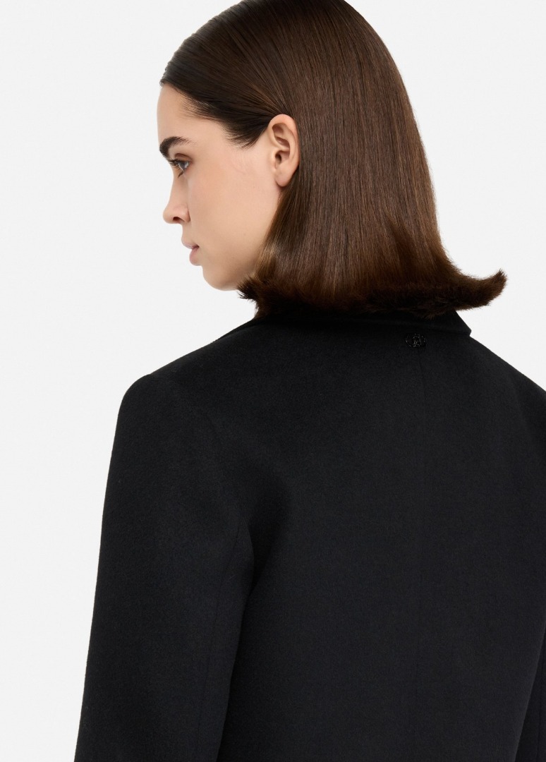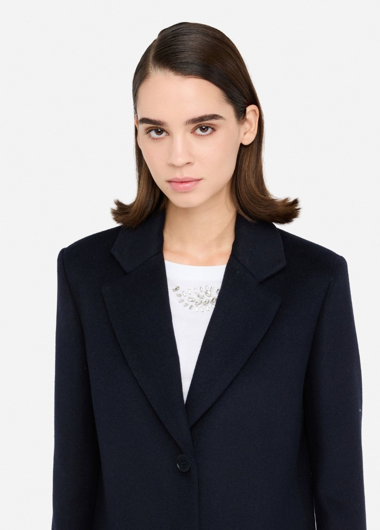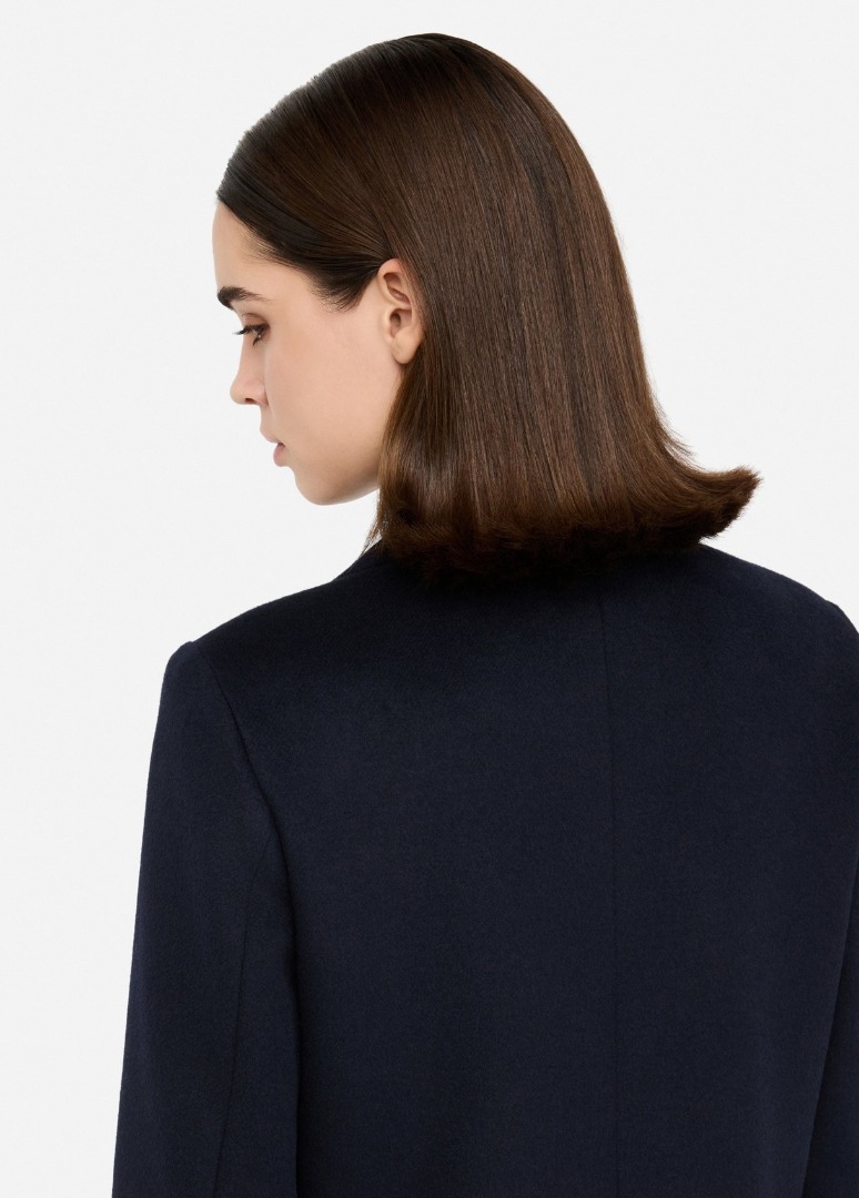 Cappotto blu scuro in lana Rever classico Tasche a filetto Spacchetto sul dietro Chiusura monopetto a tre bottoni