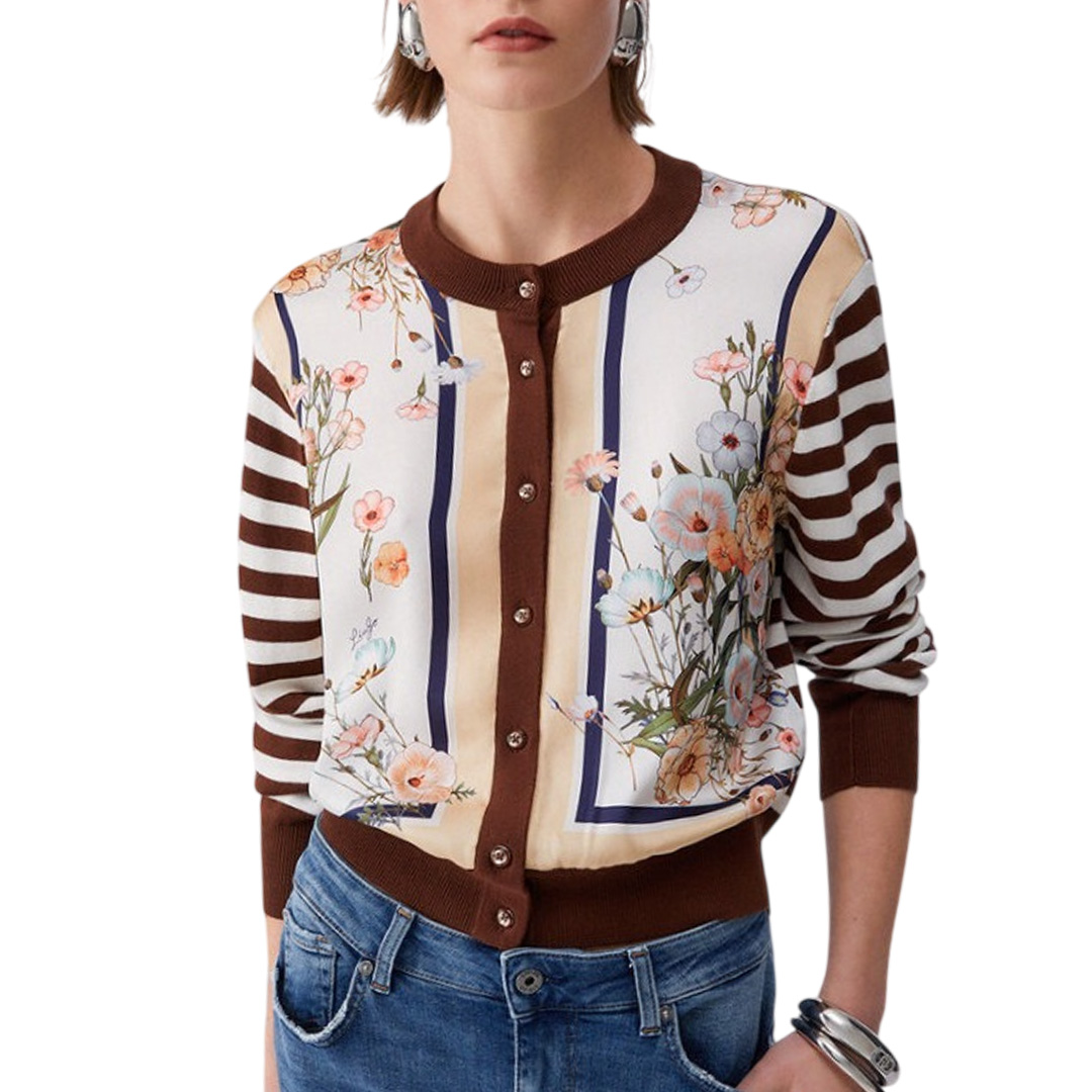 Cardigan in maglia Fantasia a righe Filati in misto viscosa Inserto in twill stampato Chiusura con bottoni a pressione Prodotto "Liu Jo Better"