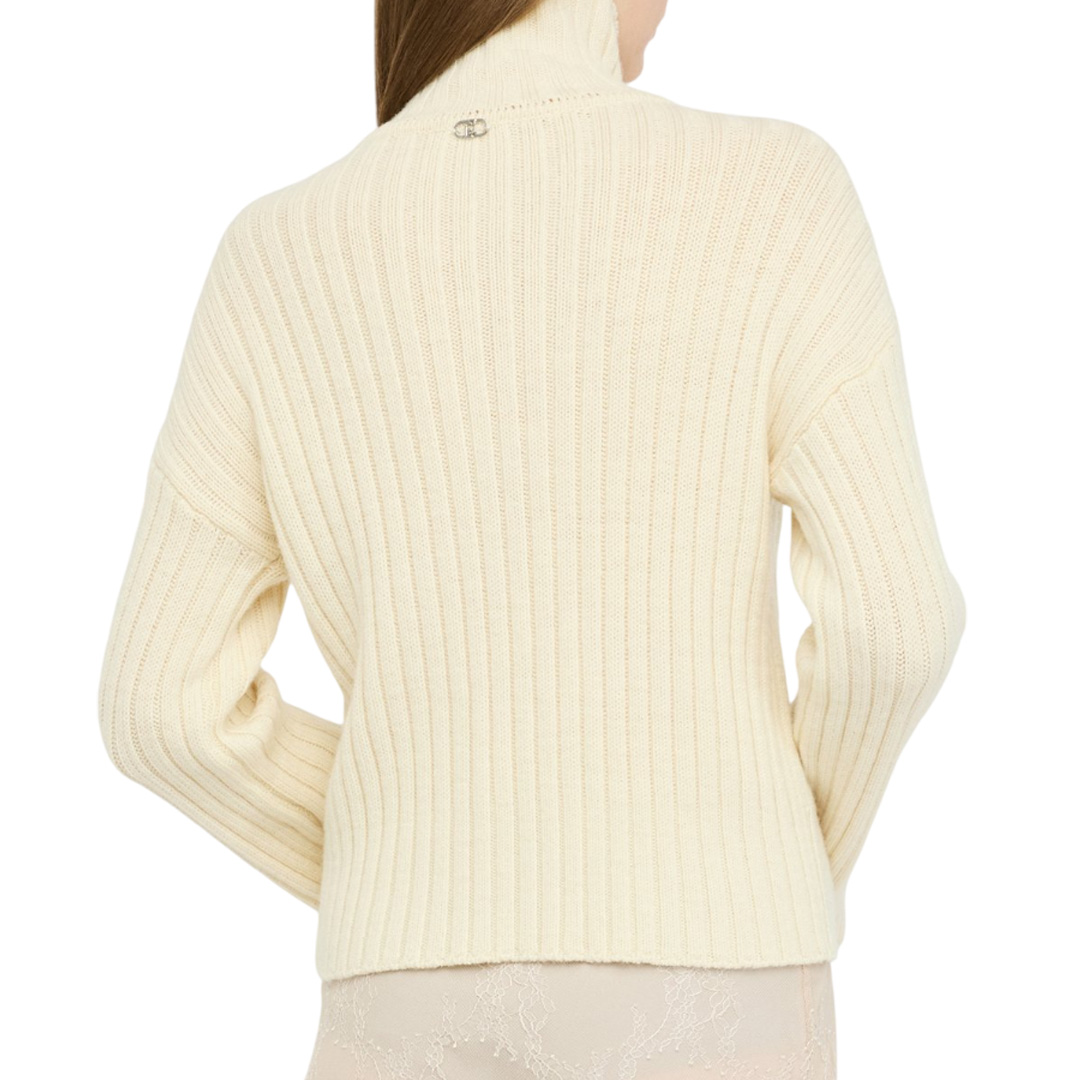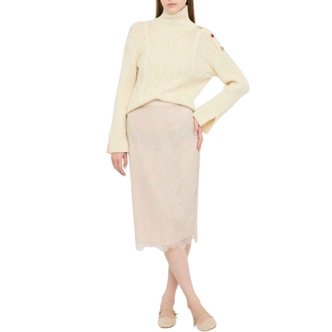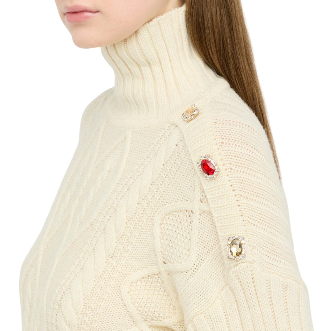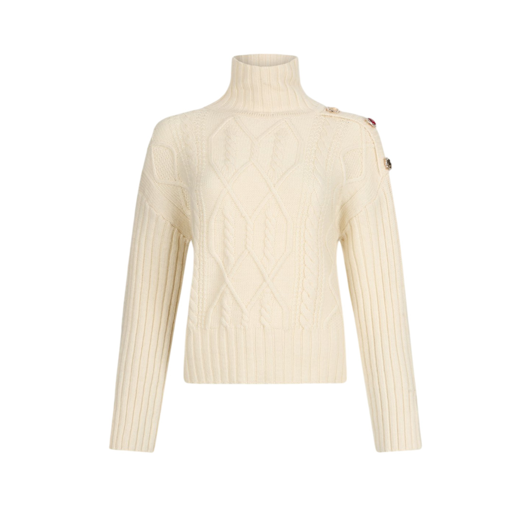 Dolcevita in maglia Filati in lana Lavorazione a trecce Bottoni gioiello sulla spalla
