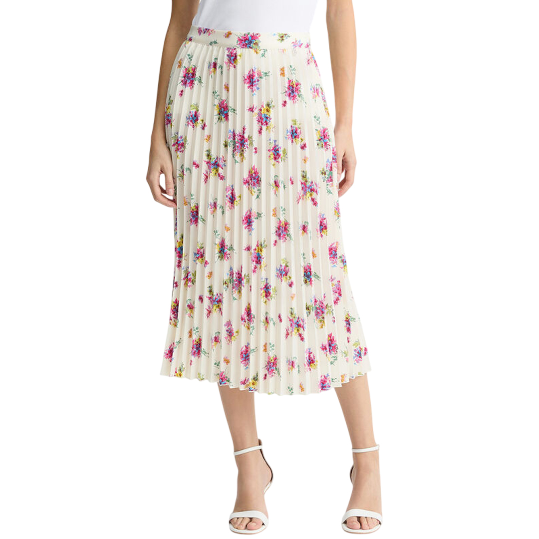 Bianco candido e delicato per questa gonna plissé, arricchita da piccoli fiorellini colorati che sbocciano sul fluido in crêpe. Abbinala a bralette in maglia e cardigan coordinati per esaltare tutta la sua femminilità. Gonna plissé bianca Realizzata in crêpe Stampa floreale all over Lettering LJ in metallo con strass Chiusura con zip sul fianco