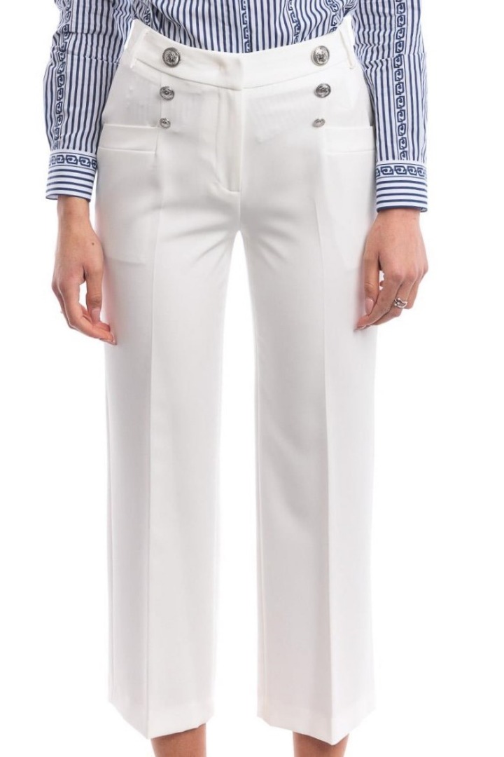 Pantaloni cropped in tessuto stretch Vita alta Bottoni decorativi sul davanti Piega stirata Tasche sui lati Mini etichetta logata in metallo sul retro Chiusura con zip nascosta Prodotto "Liu Jo Better"