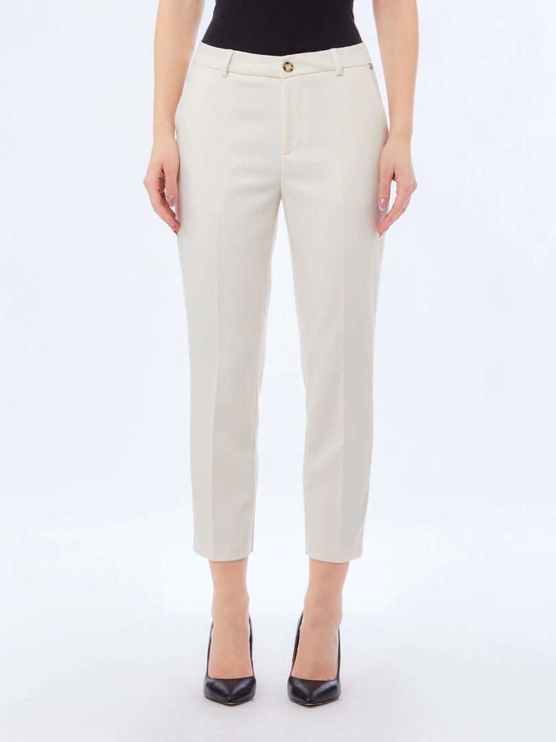 Pantaloni chino da donna Slim fit Realizzati in tessuto mélange Filati in misto viscosa Comode tasche Tasca a filetto sul dietro Chiusura con zip e bottone