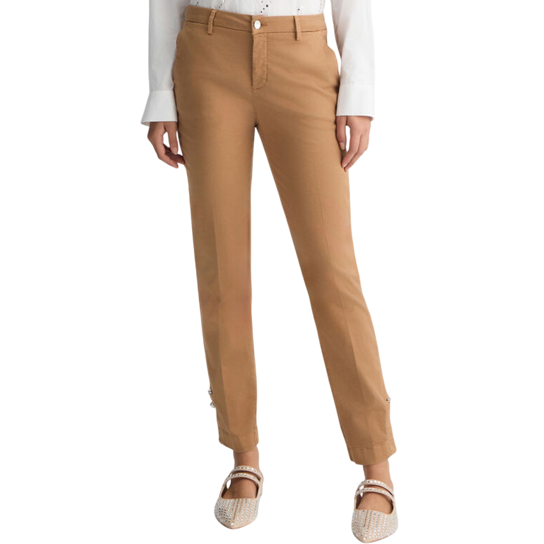 Pantaloni chino cropped in raso di cotone stretch Vita regolare Gamba dritta Piega stirata Tasche sui fianchi e a filetto sul retro Logo in metallo sul retro Spacchetti al fondo con bottone gioiello e perla Chiusura con bottone e zip nascosta