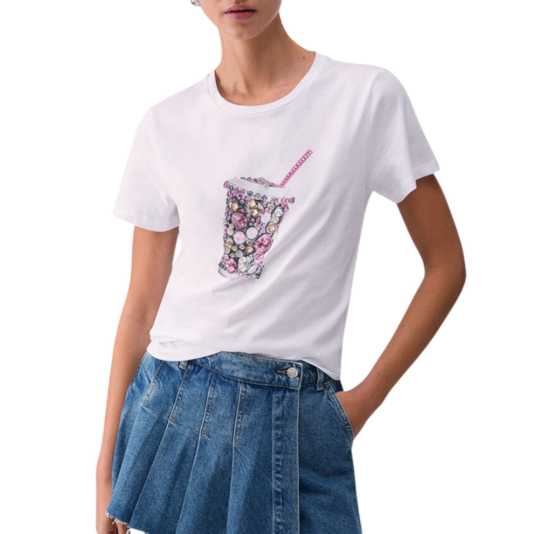 T-shirt in jersey di cotone Stampa decorativa con applicazioni Vestibilità regular per il massimo comfort Prodotto "Liu Jo Better"