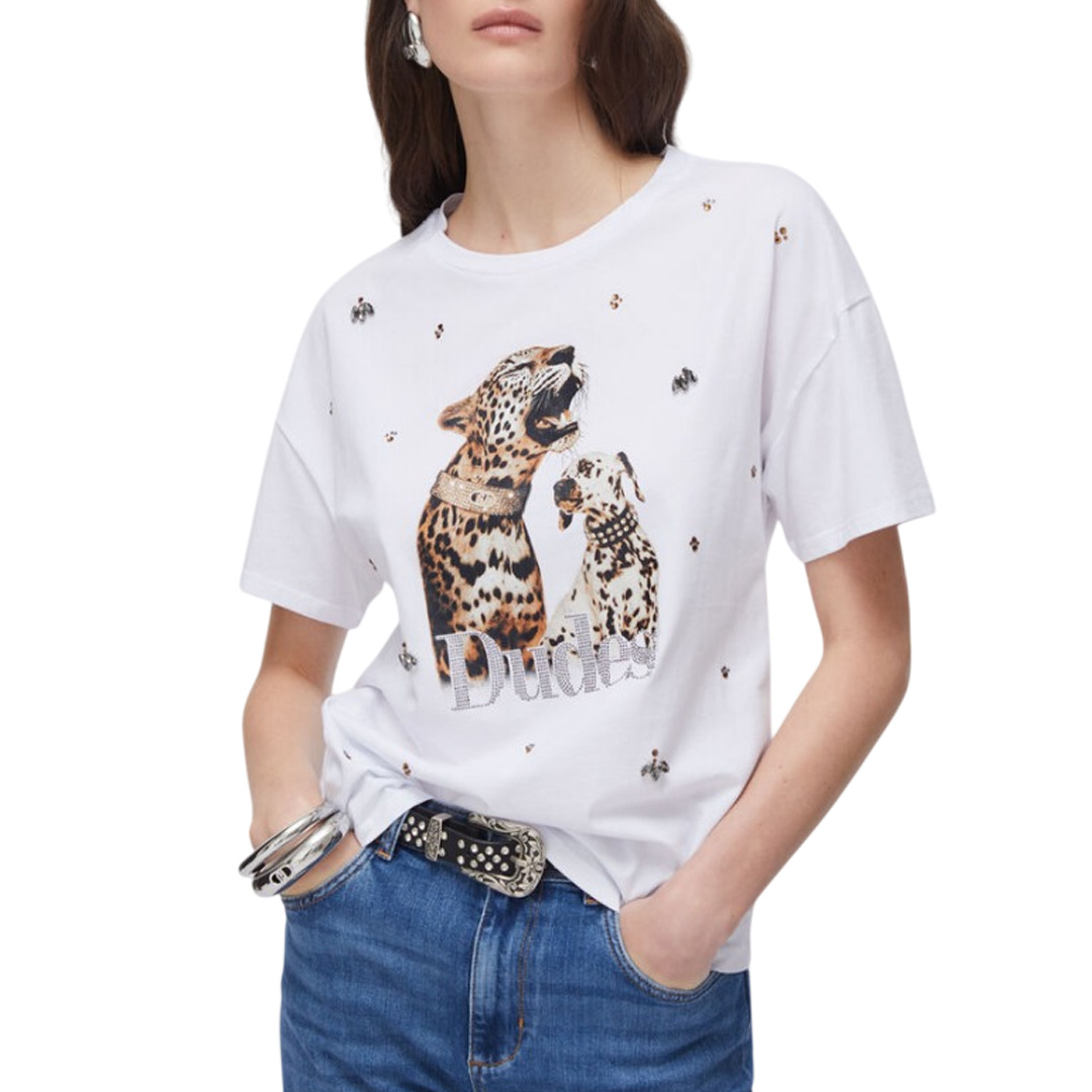 T-shirt in jersey di cotone Girocollo Maniche corte Stampa sul davanti Ricami gioiello "Prodotto "Liu Jo Better"