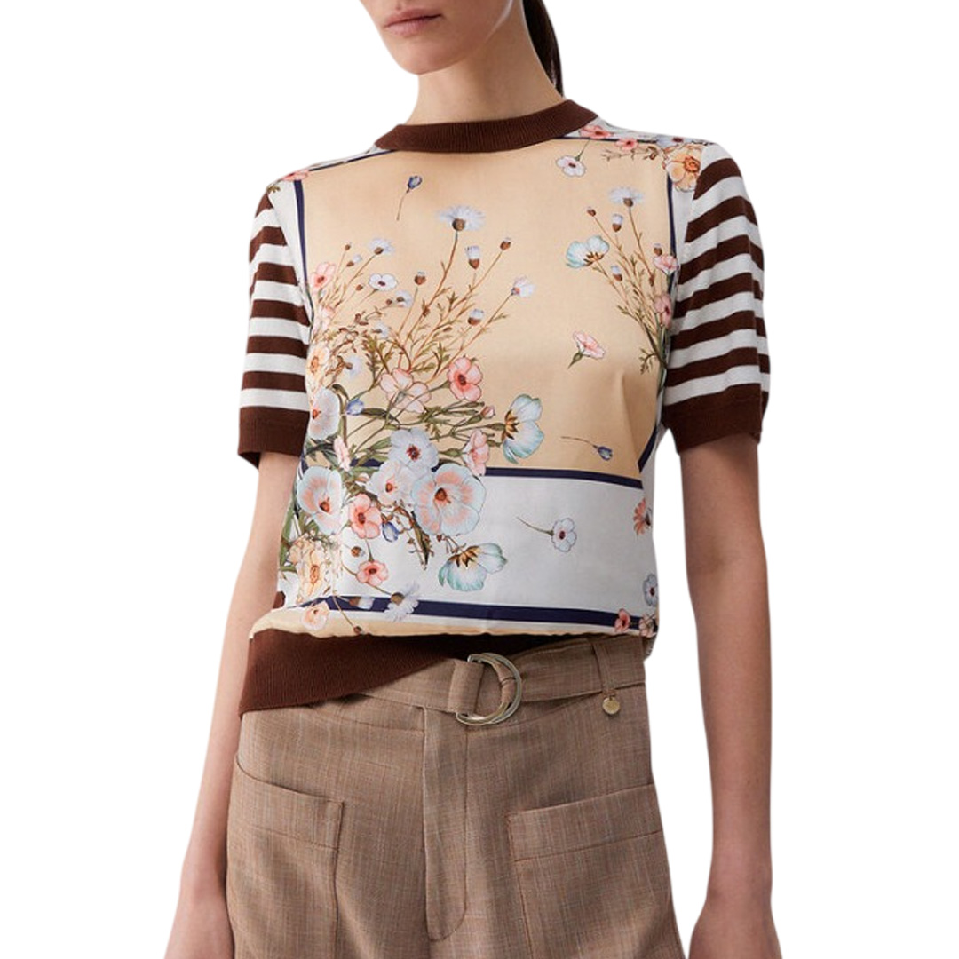Top in maglia Fantasia a righe Filati in misto viscosa Girocollo Maniche corte Inserto in twill stampato Prodotto "Liu Jo Better"