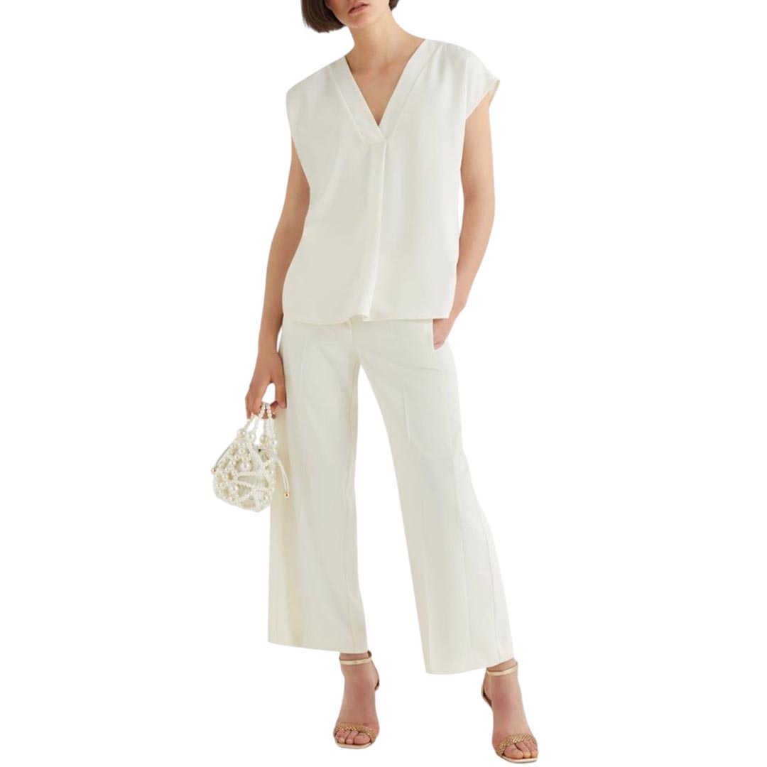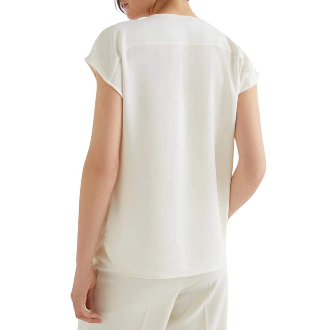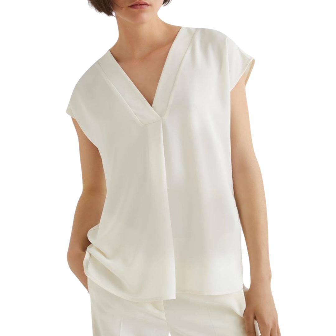 Minimal con un twist: la blusa in satin carezza la pelle e riflette la luce grazie alla sua leggera brillantezza. Con maniche a kimono e scollo a V per una versatilità che ti sorprende. Tessuto principale contenente una percentuale di poliestere riciclato superiore al 50% Blusa in satin light fluido Fit regolare Scollo a V Maniche corte con linea a kimono Carré posteriore Modello sfoderato