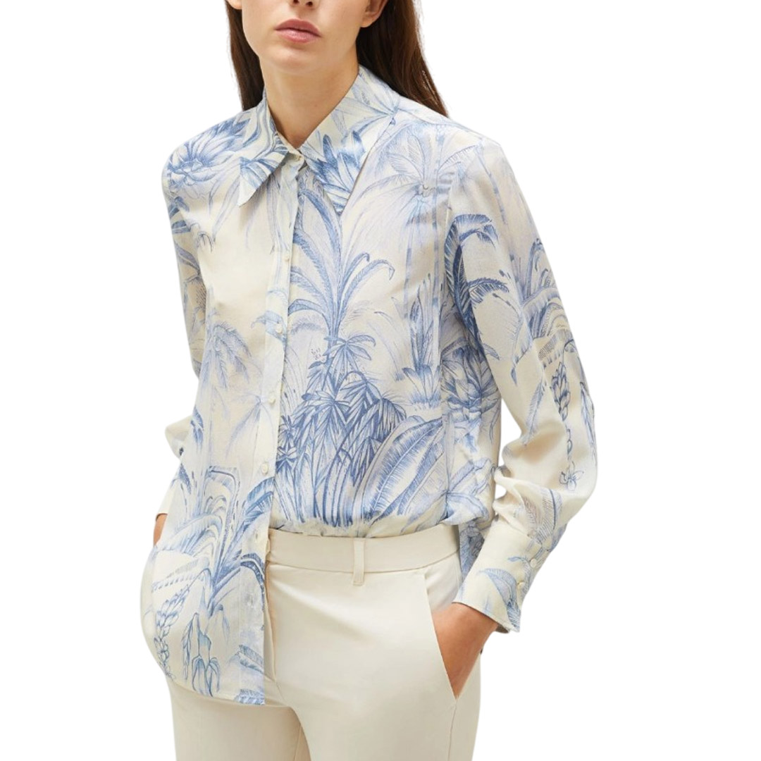 Il motivo conferisce un fascino elegante immediato a questa camicia di seta, rendendo il look da scrivania a drink un gioco da ragazzi. Camicia in crepe de chine di pura seta Vestibilità regolare Colletto della camicia Chiusura con bottoni a vista Orlo arrotondato con spacco Modello senza fodera