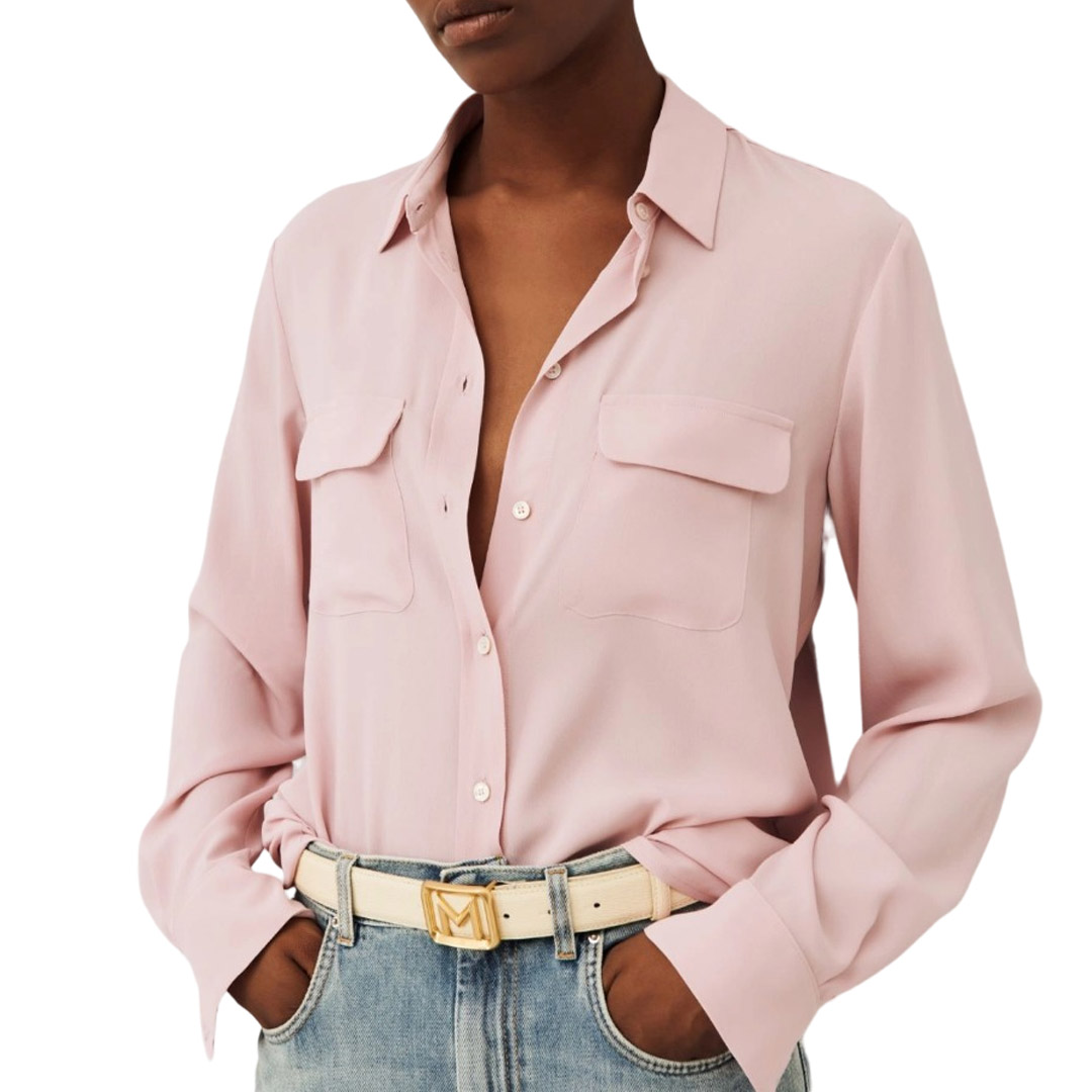 Camicia in crêpe misto seta, tessuto contenente materie prime derivanti dalla cellulosa del legno, fibra ricavata nel rispetto del patrimonio forestale. Camicia in crêpe de Chine misto seta Linea dritta con taschini con patta Collo a camicia Maniche lunghe con polsino Chiusura con bottoni a vista