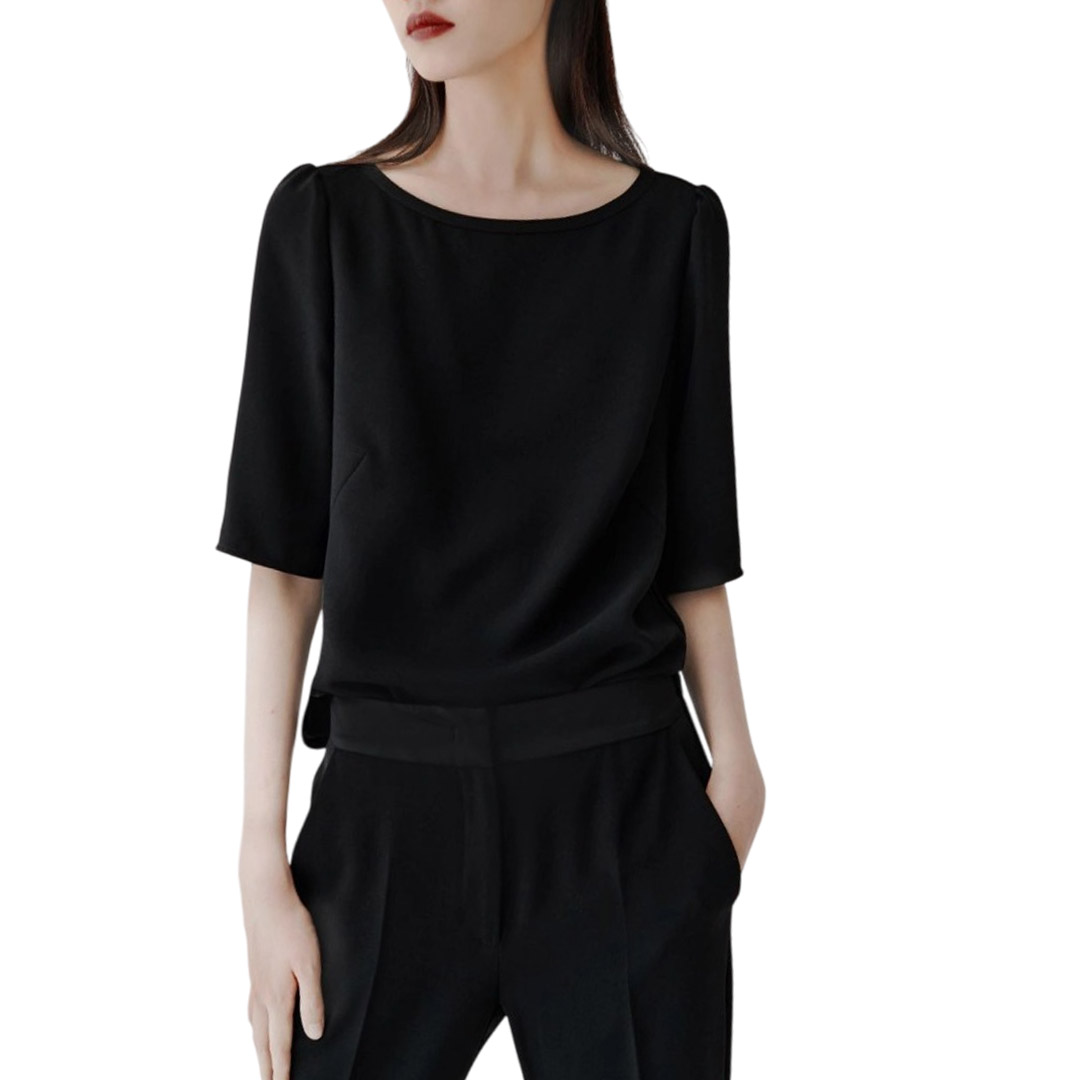 La raffinata essenzialità di questa blusa in raso consente innumerevoli look in divenire: provala con pantaloni stampati o con i tuoi jeans preferiti per uno stile impeccabile immediato. Il capo fa parte della capsule seasonless Marella ART.365. Il 51% del poliestere utilizzato per questo capo deriva da materiale plastico riciclato Camicetta in tessuto di crepe envers satin riciclato Vestibilità attillata Scollatura rotonda Maniche corte Lati leggermente ruotati in avanti con dettaglio spacco sull'orlo