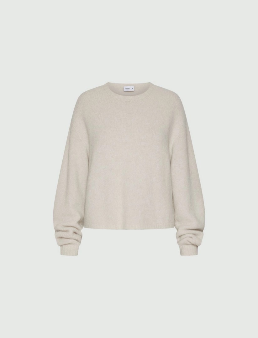 Nuance vibranti e linea boxy, la nuova maglia offre calore e la nota vaporosa del filato in alpaca. Attuale nelle forme, si abbina perfettamente con la gonna in velluto o con i denim di collezione per un casual look raffinato. Maglia in filato di misto alpaca stretch Fit boxy Scollo a giro Spalla scesa Polsi e fondo lavorati a costine