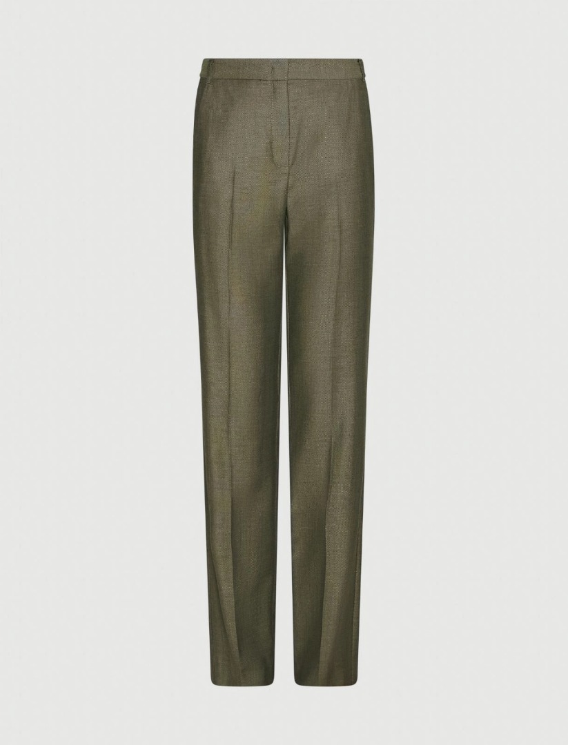 Versatile, fluido, in morbida saglia chevron per una matericità ricca: il pantalone classico non è mai stato così cool. Aggiungi una camicia dal taglio maschile e le décolleté per un'eleganza che non va mai fuori moda. Pantalone in saglia fluida di misto lana effetto resca Fit dritto Chiusura con gancio a uomo e zip nascosta Piega stirata fronte e retro Tasche laterali alla francese e posteriori a filetto