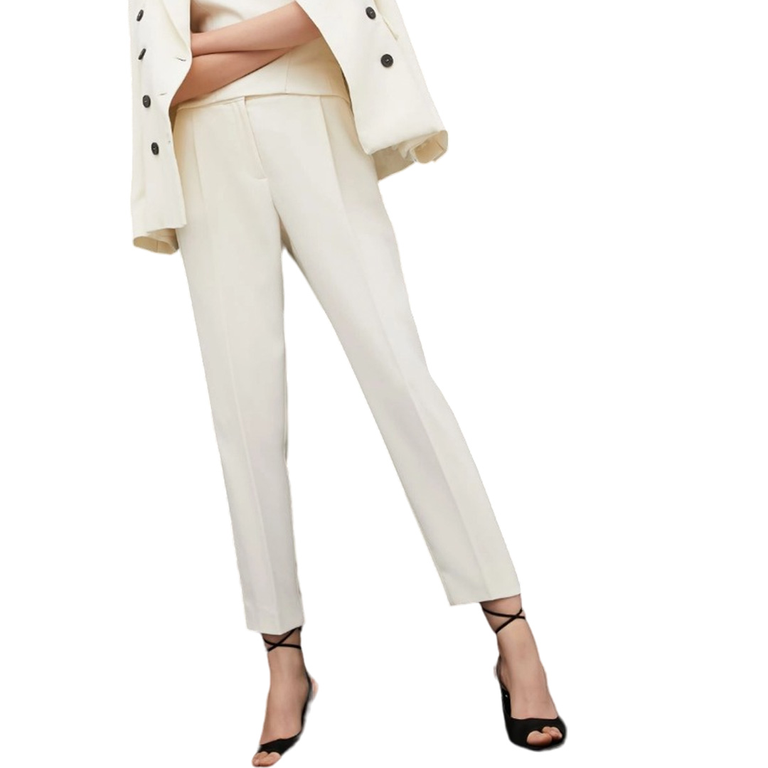 Everyday tailoring. La nuova sensualità passa attraverso pants slim, materiali pregiati, linee sartoriali declinate nelle nuance femminili. Per un'uniforme quotidiana fatta di piccoli dettagli pregiati. Pantaloni in gabardina di misto lana stretch Fit slim con gamba dritta Chiusura con gancio e zip nascosti Tasche laterali alla francese e posteriori a filetto Piega stirata fronte e retro