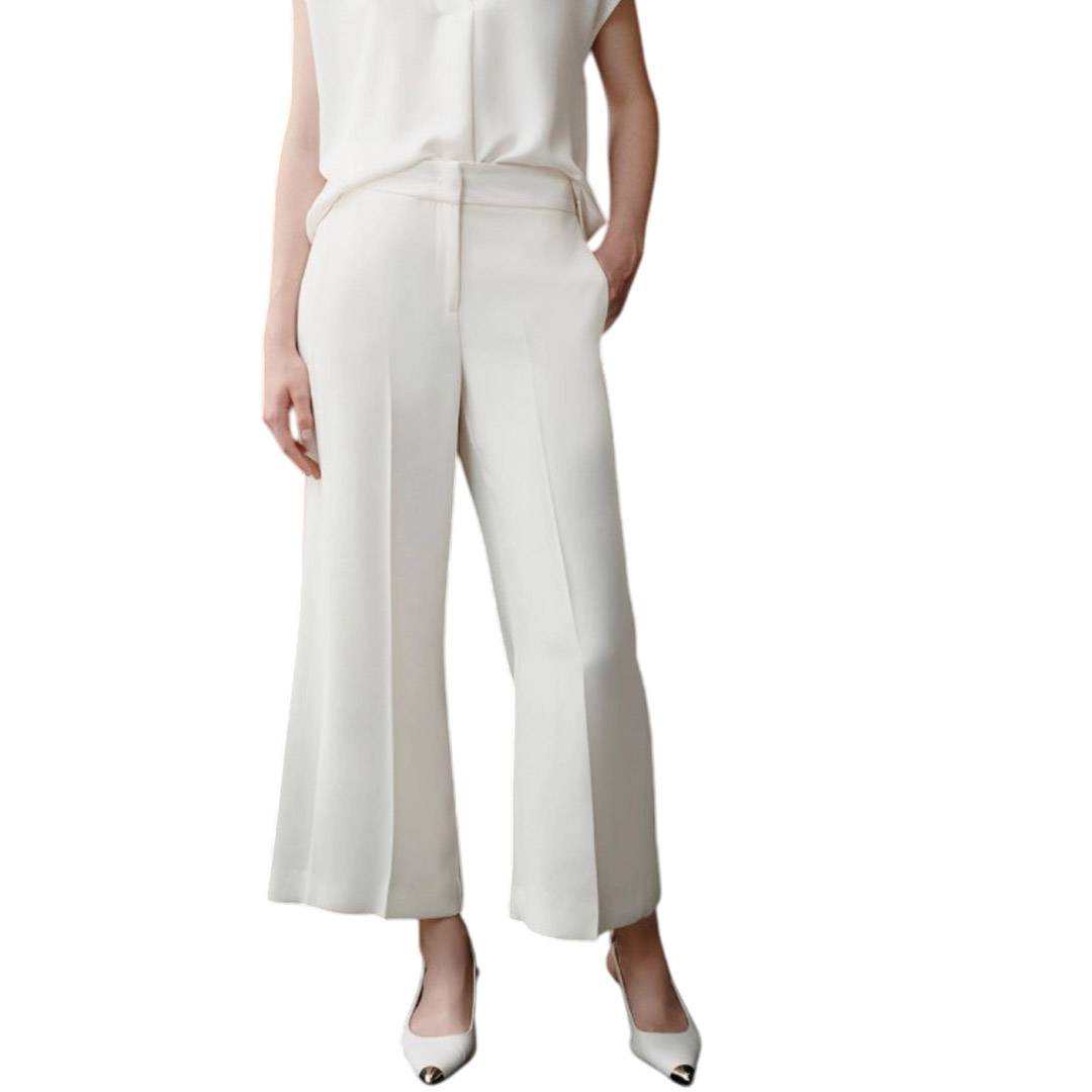 Questi pantaloni in crepe envers satin vantano un taglio ampio che snellisce la figura e sono una soluzione elegante per la giornata. Il capo fa parte della capsule senza stagione Marella ART.365. Il 51% del poliestere utilizzato per questo capo deriva da materiale plastico riciclato Pantaloni in crepe verse satin Vestibilità regolare con gamba larga Chiusura con bottone e cerniera nascosta Cintura elastica posteriore Dettaglio piega pressata