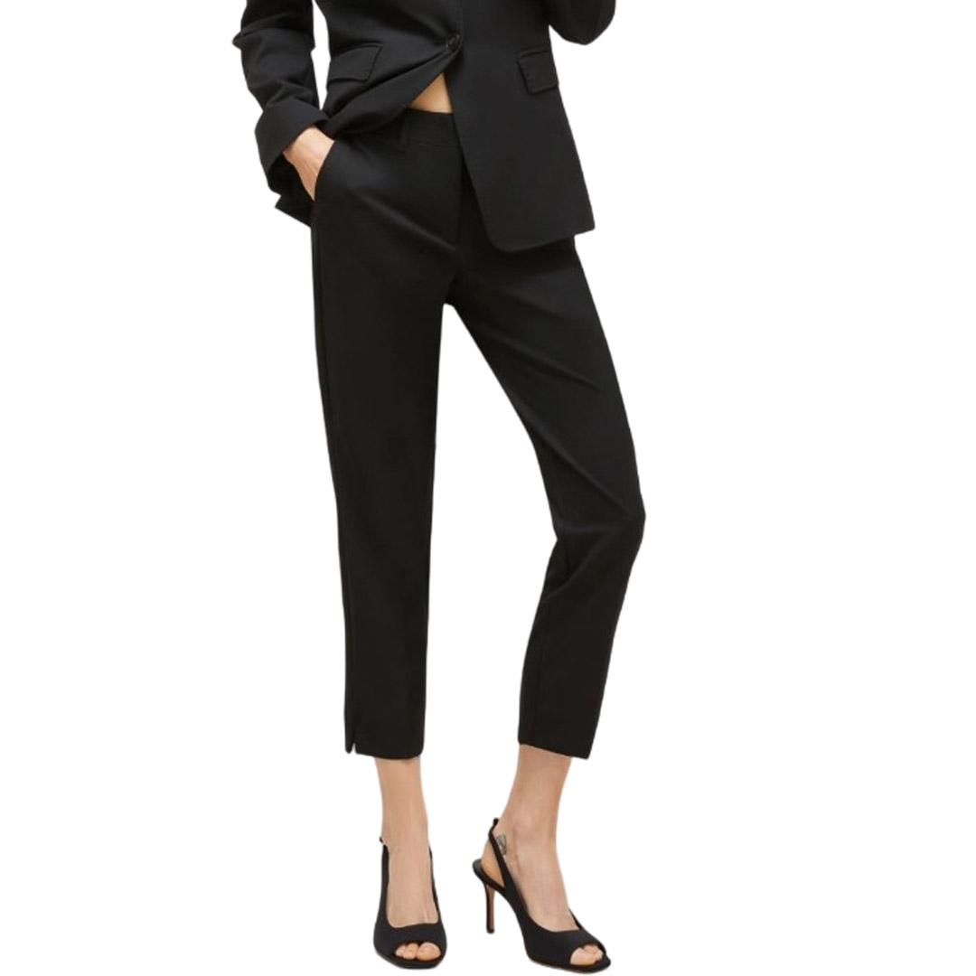 I pantaloni chino slim sono i nostri preferiti: sono versatili, snelliscono la figura e si abbinano con stile a una T-shirt, una camicetta di seta o un blazer da lavoro. Indossa i tuoi sandali speciali e sarai pronta per uscire. Pantaloni chino in tela elasticizzata Vestibilità slim con dettaglio spacco alla caviglia Chiusura con gancio e barra e cerniera coperti da patta Tasche laterali oblique e tasche posteriori a filetto Dettaglio piega stirata sul davanti e sul retro
