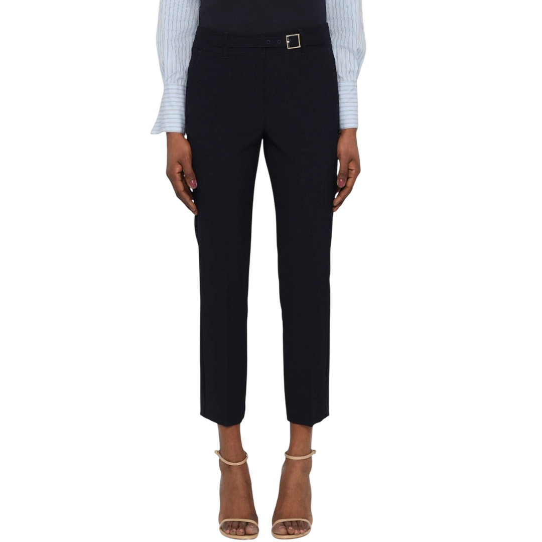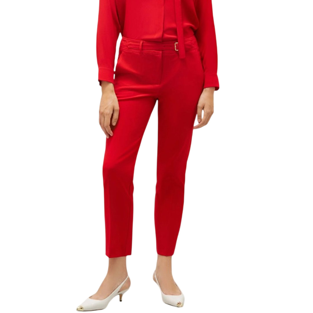 Questi pantaloni elasticizzati seguiranno il flusso e potranno essere usati come parte di innumerevoli look. Il cinturino in vita aggiunge un tocco personalizzato. Il poliestere utilizzato per questo capo è derivato da materiale plastico riciclato Pantaloni in tela elasticizzata misto viscosa Vestibilità dritta Chiusura con cinturino decorato con fibbia in metallo Tasche laterali oblique e tasche posteriori a filetto Dettaglio di pieghe pressate sul davanti e sul retro