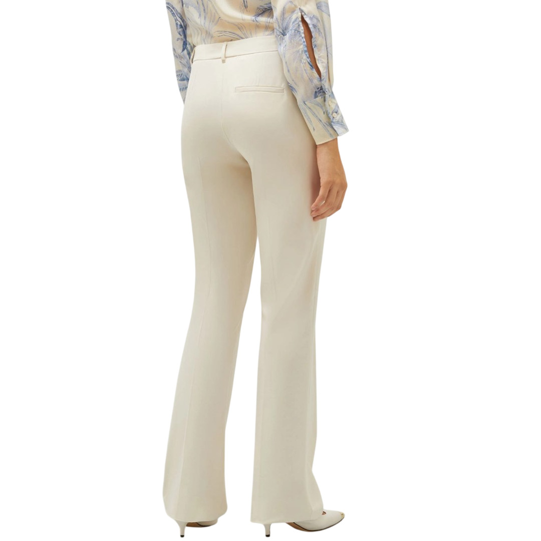Perfetti per l'ufficio, la città o per aggiungere un tocco sofisticato alle serate con gli amici: questi pantaloni a zampa seguono il trend di stagione e rivelano una sorprendente versatilità. Il poliestere utilizzato per questo capo è derivato da materiale plastico riciclato Pantaloni in misto viscosa elasticizzata Taglio leggermente svasato sull'orlo Chiusura con cerniera coperta da patta e gancio e barra Tasche laterali oblique e tasche posteriori a filetto Dettaglio di pieghe pressate sul davanti e sul retro