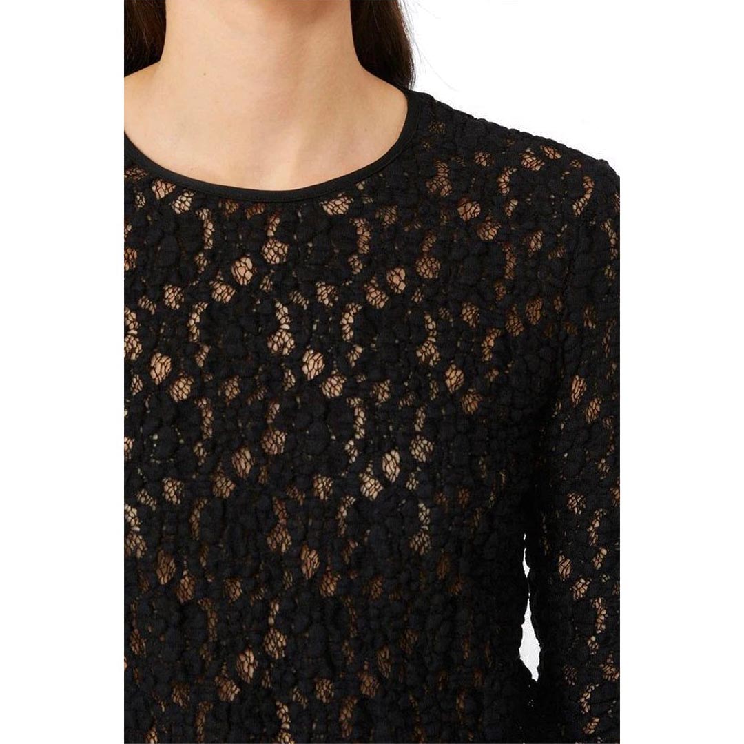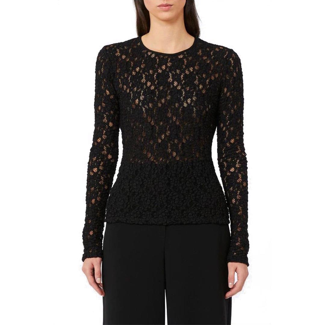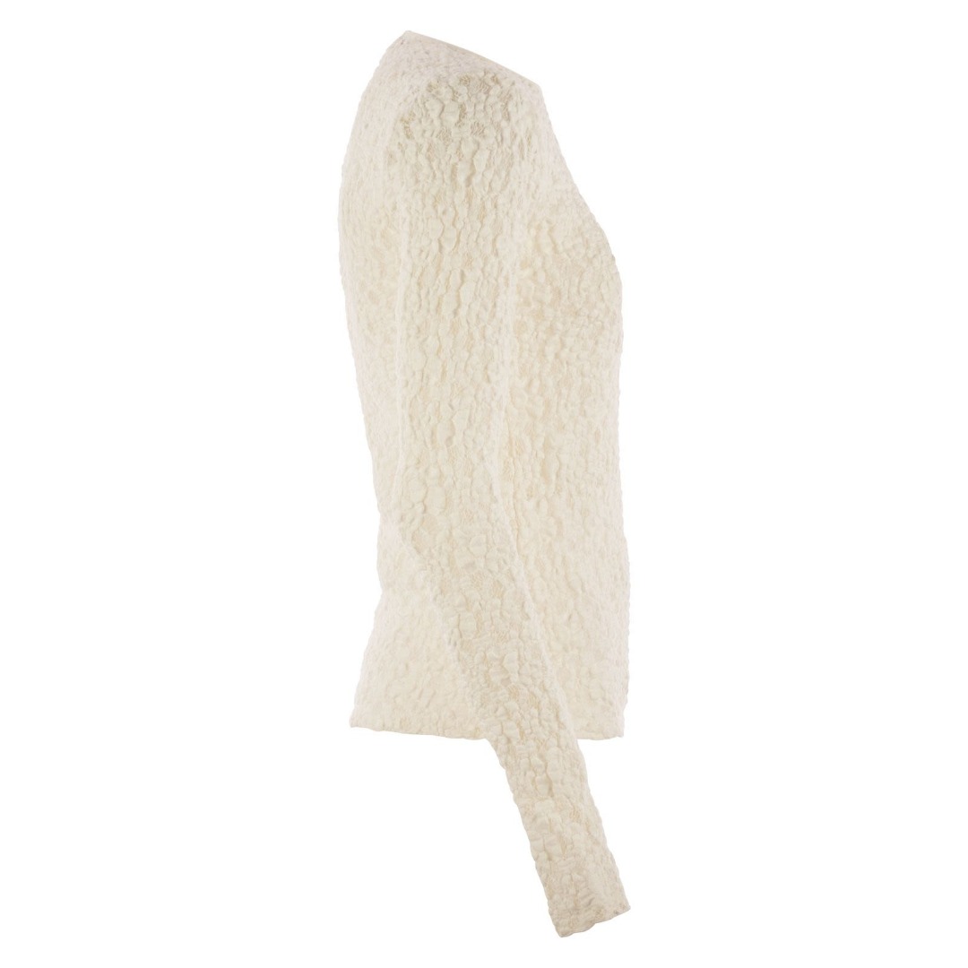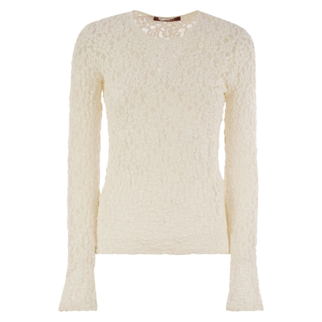 Maglia in pizzo cloquè stretch di cotone dalla silhouette sensuale e femminile. Caratterizzata da maniche lunghe e vestibilità aderente. - Linea aderente - Girocollo - Maniche lunghe