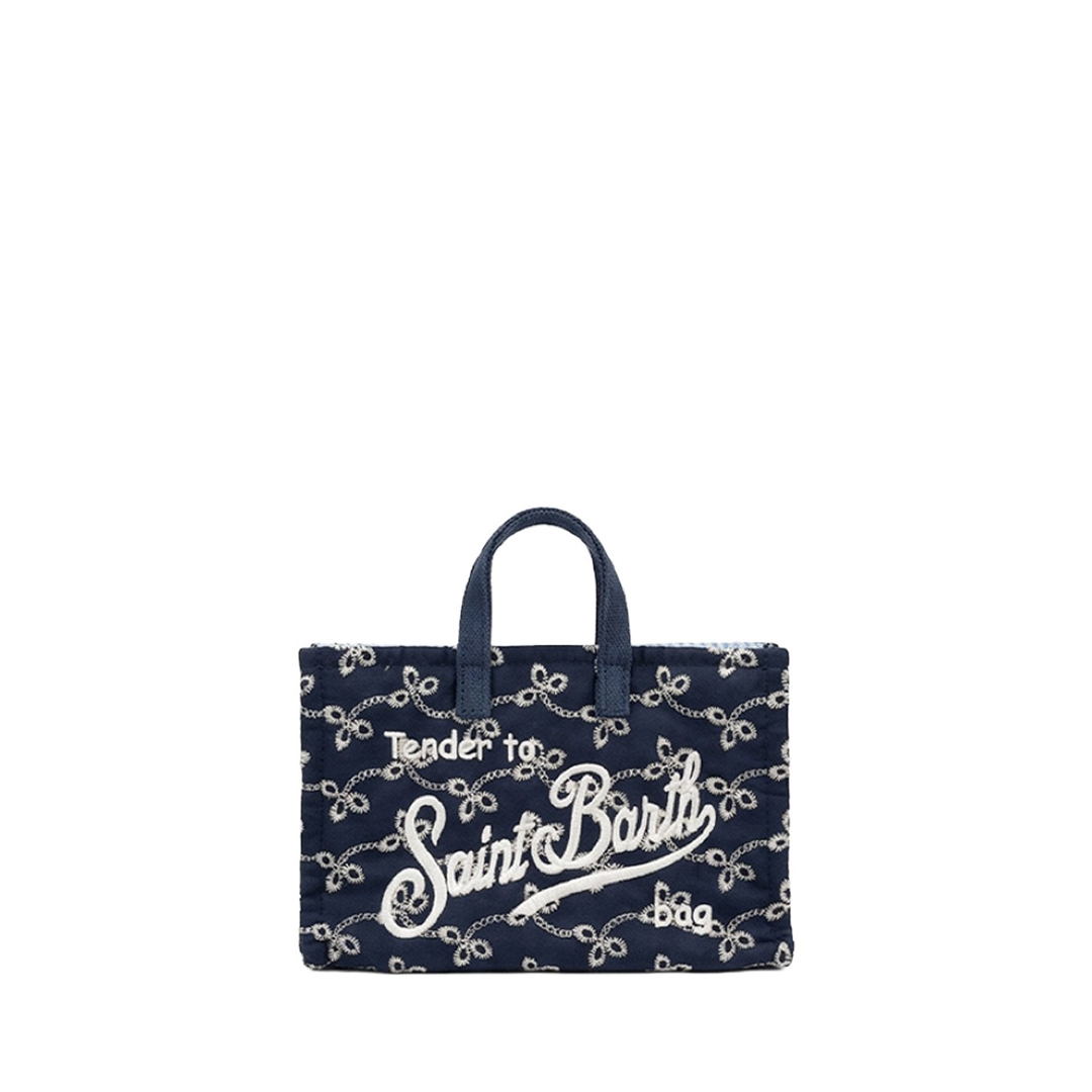 Phone Bag MC2 Saint Barth blu con design sangallo Misure: 15x10x3,5 cm Blu Design sangallo Tracolla blu navy Logo ricamato sul davanti Doppi manici