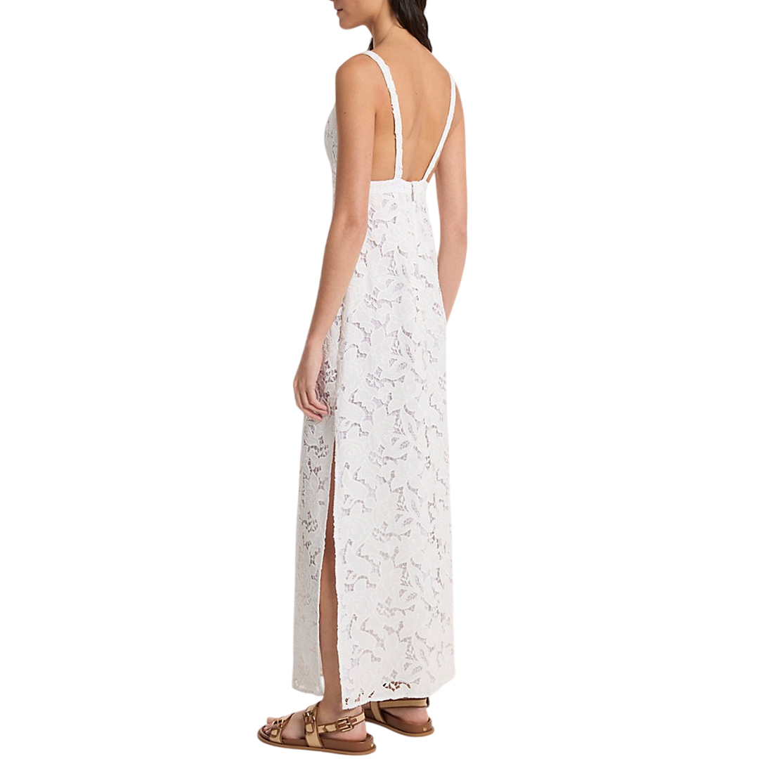 Cattura l'eleganza disinvolta della stagione con questo splendido abito maxi. Realizzato in pizzo floreale cordonato, offre una texture romantica e uno scollo profondo per un tocco di fascino in più. A noi piace abbinato ad accessori in rafia. • Abito • Pizzo floreale cordonato