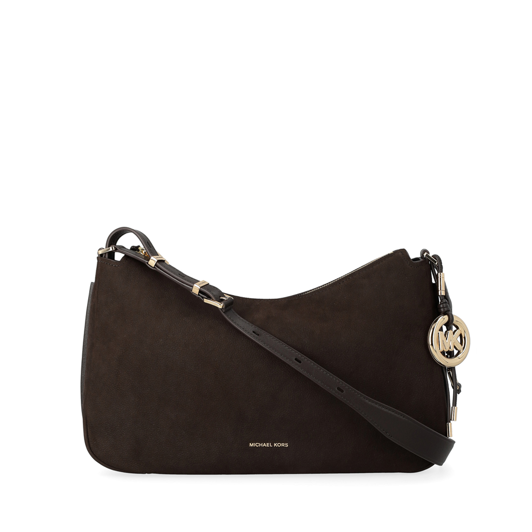 Borsa Michael Kors modello Nolita misura media realizzata in nabuk color cioccolato. Caratterizzata dal logo frontale e da componenti metallici dorati. Presenta anche tre tasche interne di cui una con zip e due a bustina oltre ad una chiusura con zip ed una tracolla regolabile. Logo frontale Componenti metallici dorati Tre tasche interne Chiusura con zip Tracolla regolabile Dimensioni: 40 x 24,8 x 12,7 cm