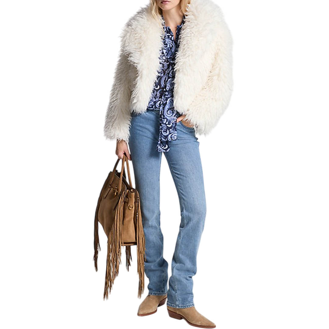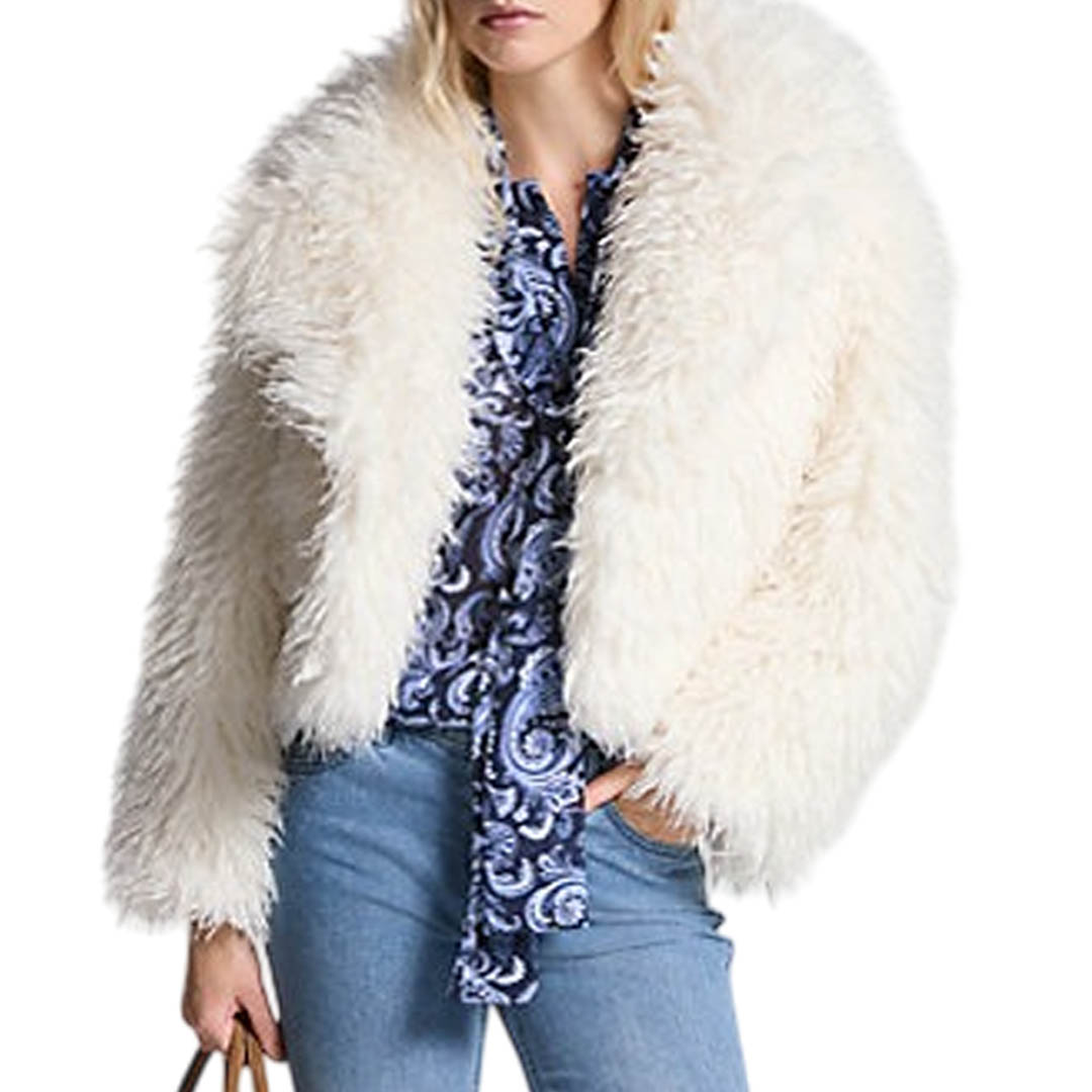 Questa avvolgente giacca in pelliccia sintetica è un capo di classe. La silhouette ispirata a un caban aggiunge un fascino senza tempo, mentre il taglio cropped conferisce un look moderno. Disponibile nelle versatili tonalità bianco e nero, trasformerà all'istante qualsiasi look invernale. • Giacca • Pelliccia sintetica • Chiusura con gancio