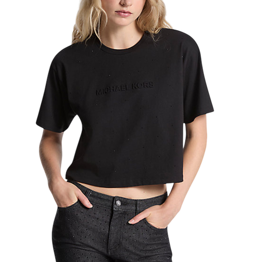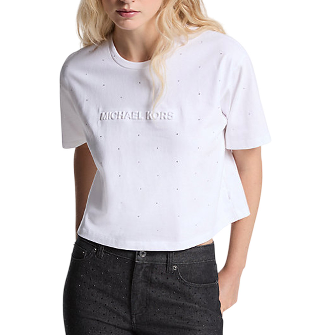Questa t-shirt in cotone è un concentrato di stile contemporaneo grazie al logo discreto sul davanti e alle delicate borchie. Un modello che non può mancare nel tuo guardaroba: si abbina a tutto, dai jeans ai joggers.