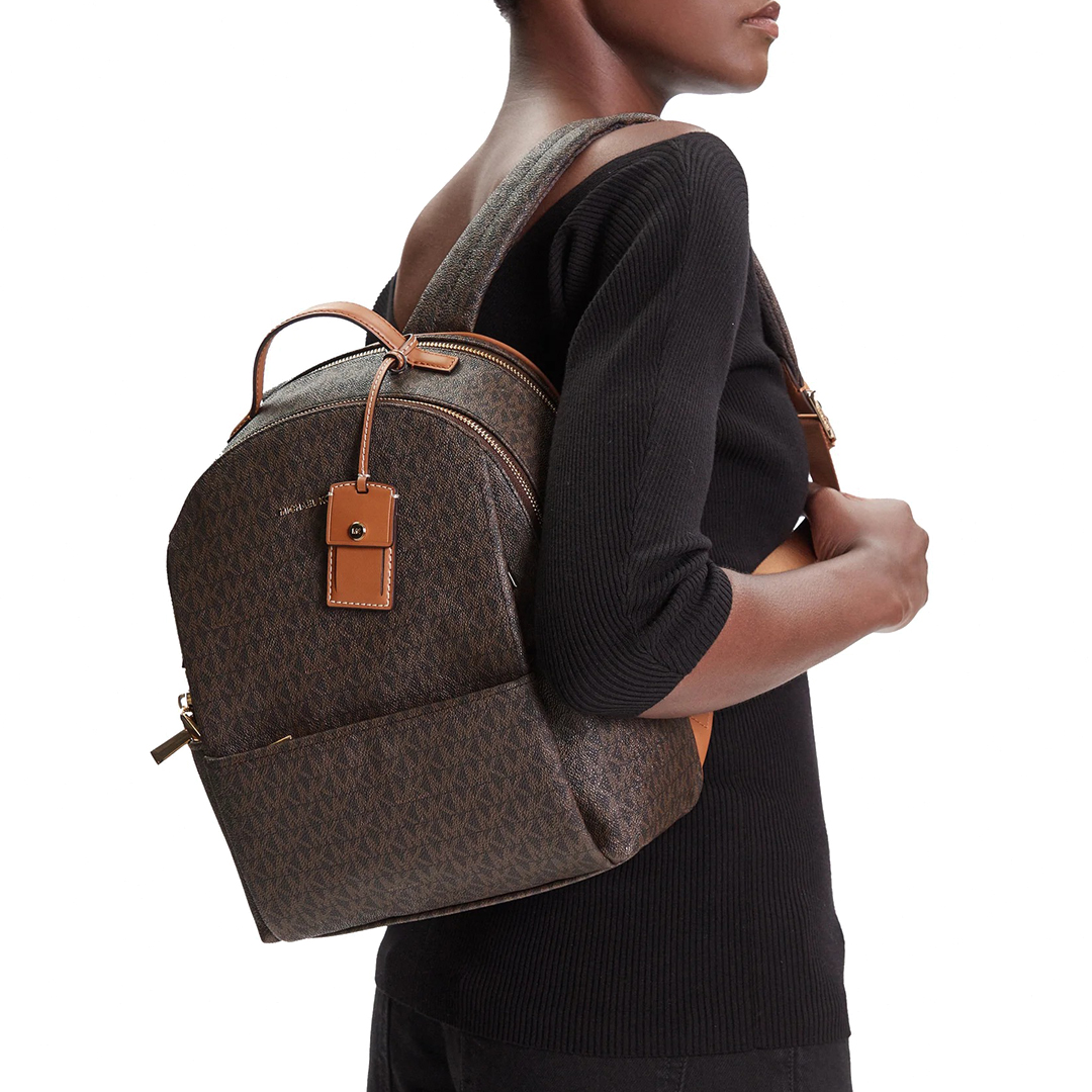 Zaino MICHAEL KORS in similpelle con motivo logo Due scomparti con chiusura con zip Manico corto Spallacci regolabili Scomparto esterno con zip Tasche laterali Dimensioni zaino: Piccolo (non contiene formato A4) Dimensioni: 25 x 33 x 11 cm