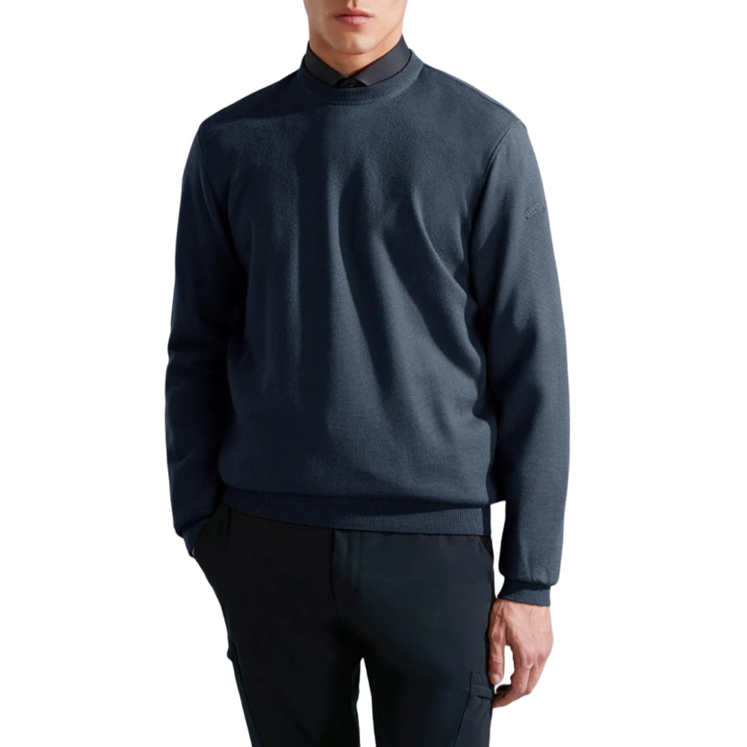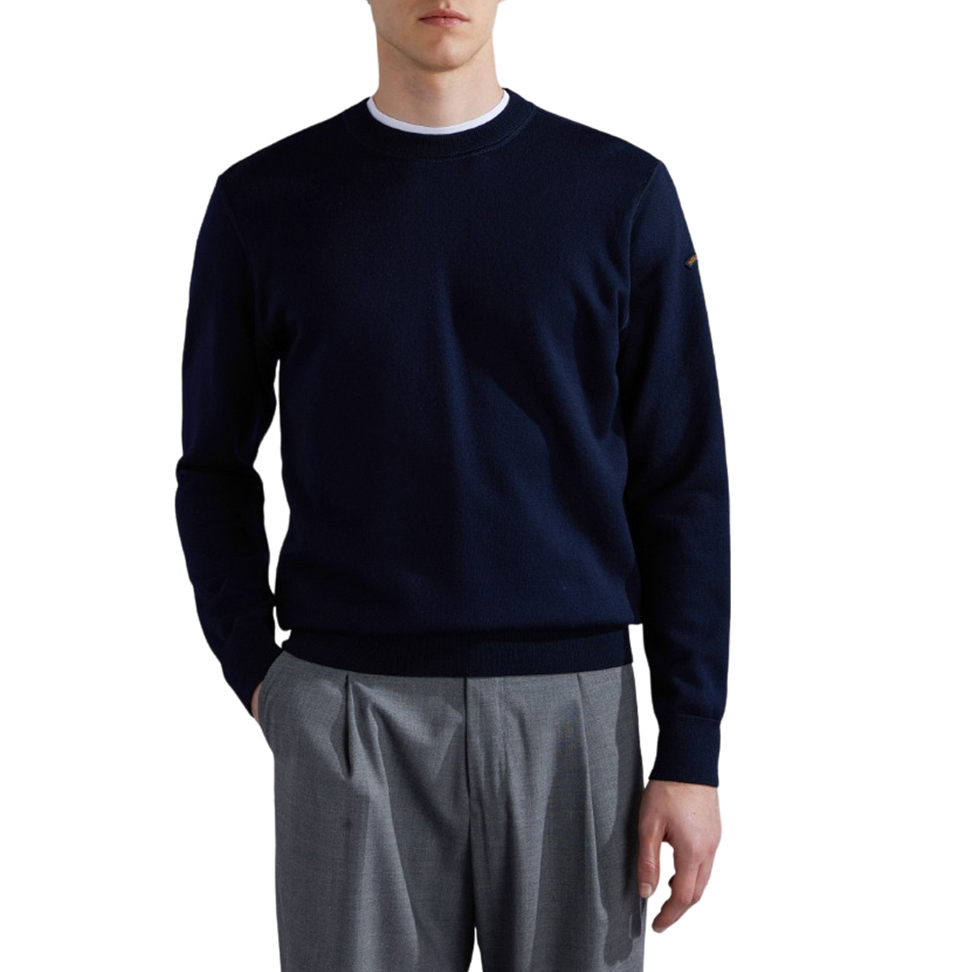 L’essenziale del cambio di stagione, perfetto per costruire layering sofisticati. Questa maglia è realizzata in morbida lana e si distingue per i profili con cuciture tubolari che aggiungono al look una nota moderna. Il motivo a righe all'interno del collo e l'iconico Moon badge sulla manica sono un omaggio all'heritage Paul & Shark legato all'immaginario yachting. Moon badge Maglia girocollo in lana finezza 14 con cuciture bold Collo, polsi e balza a costine Motivo a righe interno sul collo Maglia operata