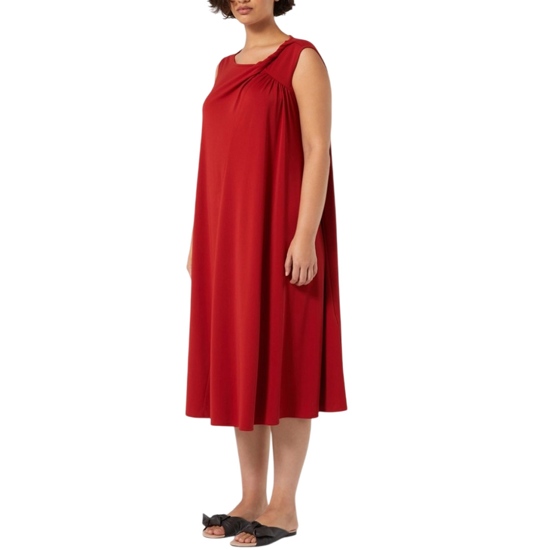 Un motivo a torchon sul davanti definisce il design dell'abito in jersey interlock stretch, dalla linea svasata. Puoi applicare al modello le maniche corte in dotazione con un intervento di sartoria dedicato. Il capo fa parte della collezione Persona by Marina Rinaldi. Jersey interlock stretch Linea svasata Motivo torchon davanti Maniche corte in dotazione