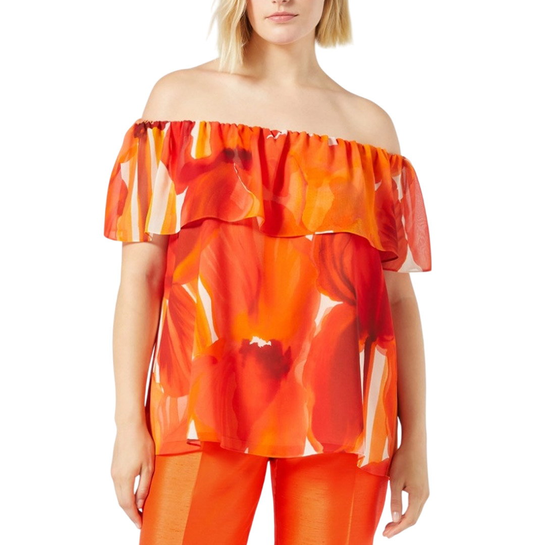 Una raffinata balza sullo scollo definisce il design della blusa in georgette, con stampa in esclusiva. Un modello dall'appeal grafico e femminile che eleva in un attimo qualsiasi look. Il capo fa parte della collezione Persona by Marina Rinaldi. Georgette stampato Linea svasata Scollo off shoulder con balza