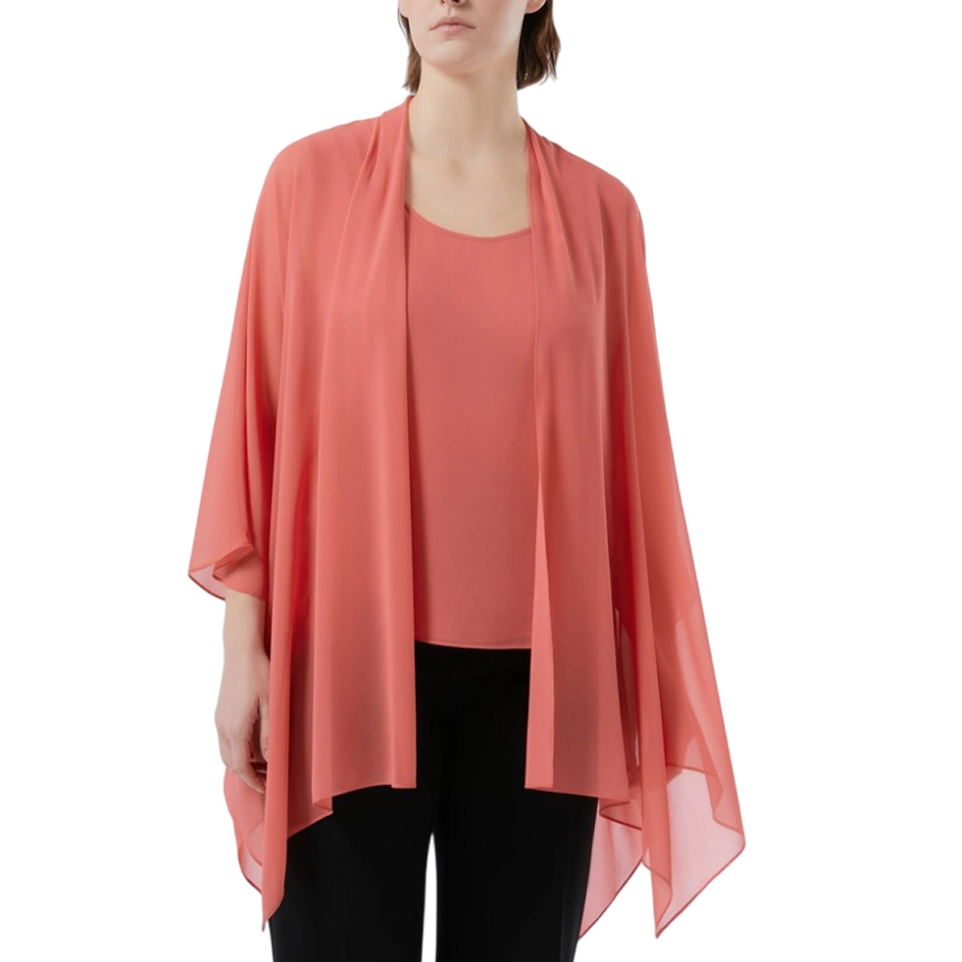 Aggiungi femminilità al tuo stile con il coprispalle leggero in georgette, dalla linea fluida. Facile da abbinare e indossare per le occasioni speciali. Il capo fa parte della collezione Persona by Marina Rinaldi. Georgette Linea fluida Scollo sciallato Maniche a tre quarti Senza allacciatura