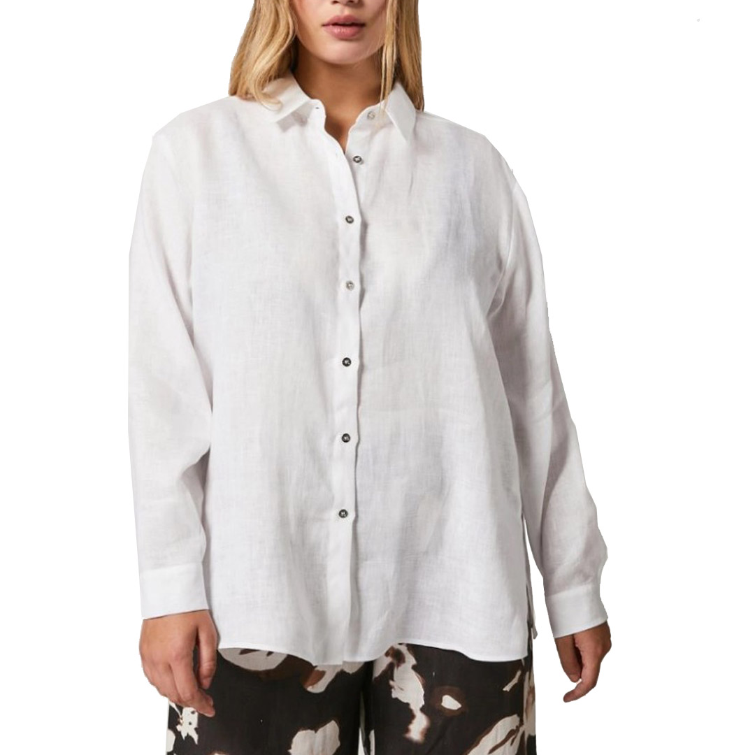 Camicia dalla linea dritta realizzata in lino tinto in filo. Il modello ha colletto classico, maniche lunghe, motivo di contropiego sul retro e spacchetti laterali. Chiusura con bottoni.