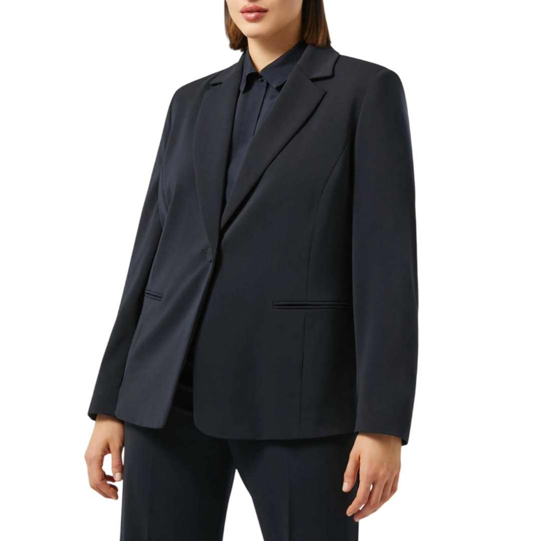 Sartoriale e versatile la giacca blazer in cady stretch con bottone ricoperto. Da indossare in look on e off duty. Il capo fa parte della collezione Persona by Marina Rinaldi. Cady stretch Linea semiaderente Tagli fianchetto davanti e dietro Dettagli in tessuto lucido Collo con revers Chiusura con bottone ricoperto Maniche lunghe Tasche con doppio filetto Fodera stretch
