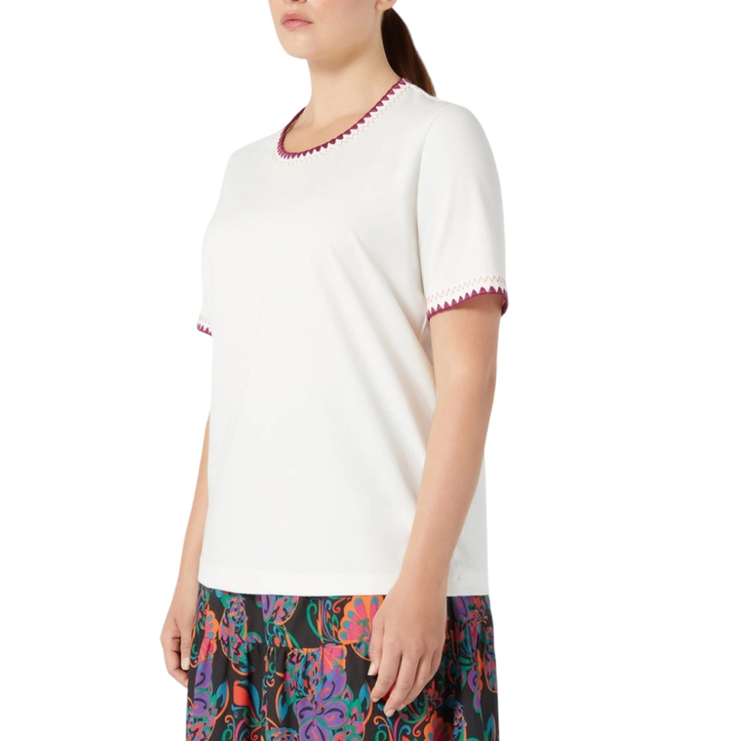 Linea over per la T-shirt in jersey di viscosa dal fascino versatile. Key-item del guardaroba quotidiano. Il capo fa parte della collezione Persona by Marina Rinaldi. Jersey di viscosa Linea over Scollo tondo Maniche al gomito