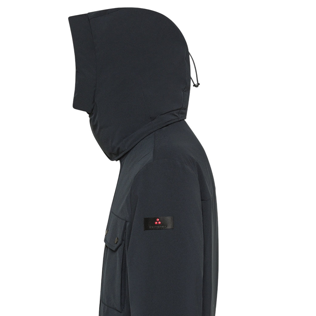 Field jacket in tessuto stretch di poliestere riciclato con struttura twill e aspetto pulito e opaco. Il leggero coating sul rovescio dona corpo al tessuto, migliora la tenuta della piuma e conferisce proprietà antivento, mantenendo al tempo stesso una mano morbida e confortevole. L’imbottitura in piuma naturale certificata offre un comfort termico ideale con un peso contenuto, mentre il trattamento idrorepellente protegge dagli imprevisti meteo. Il design funzionale con quattro tasche frontali con chiusura a botticini automatici, zip centrale coperta da patta, cappuccio fisso e collo alto con chiusura a bottoni a pressione, per una protezione completa e uno stile urbano distintivo firmato Peuterey. Full zip centrale coperta da patta In twill di poliestere riciclato Coating sul rovescio Antivento e idrorepellente Cappuccio fisso Collo alto con chiusura a bottoni Imbottitura in piuma naturale certificata Quattro tasche frontali con bottoncini Vestibilità: Regular