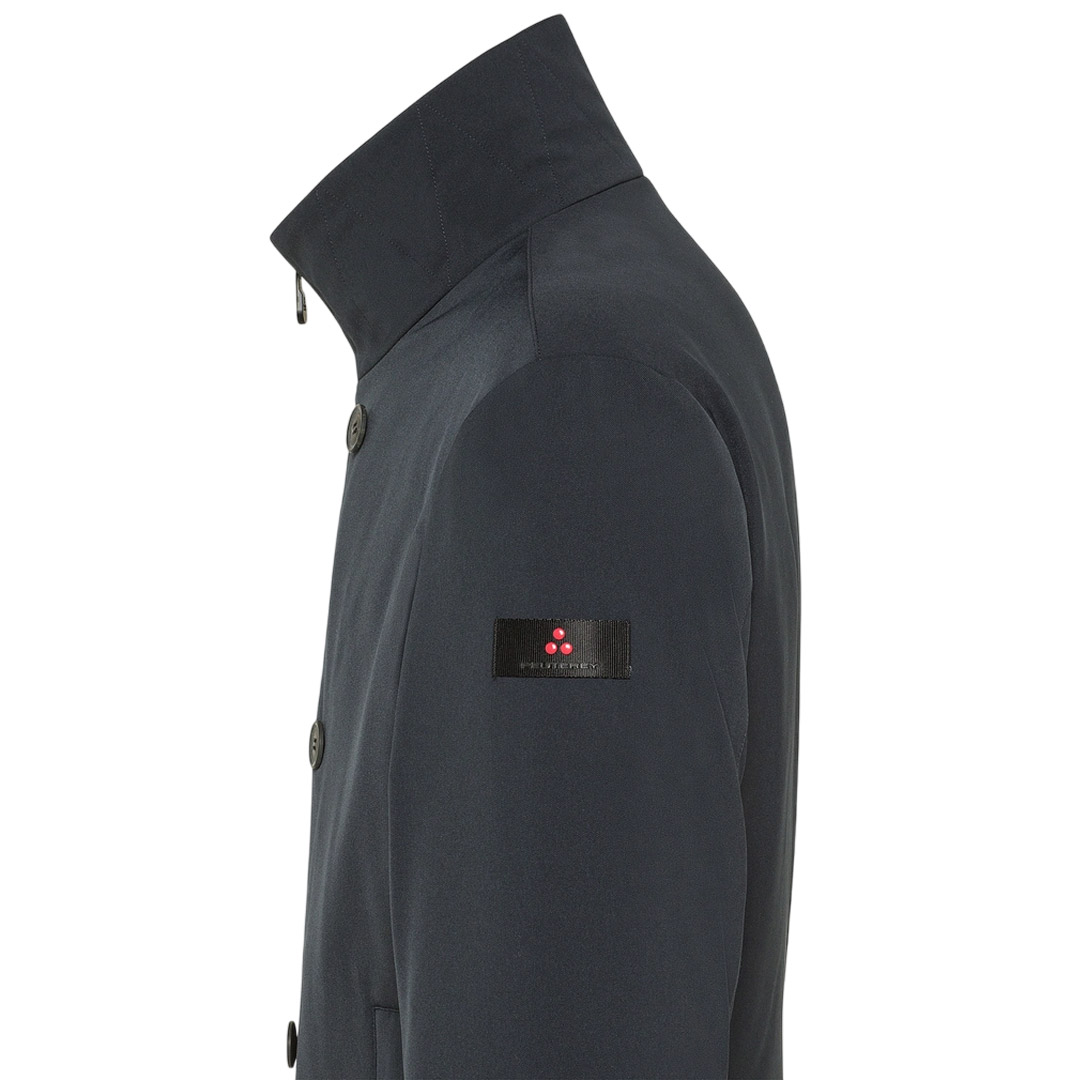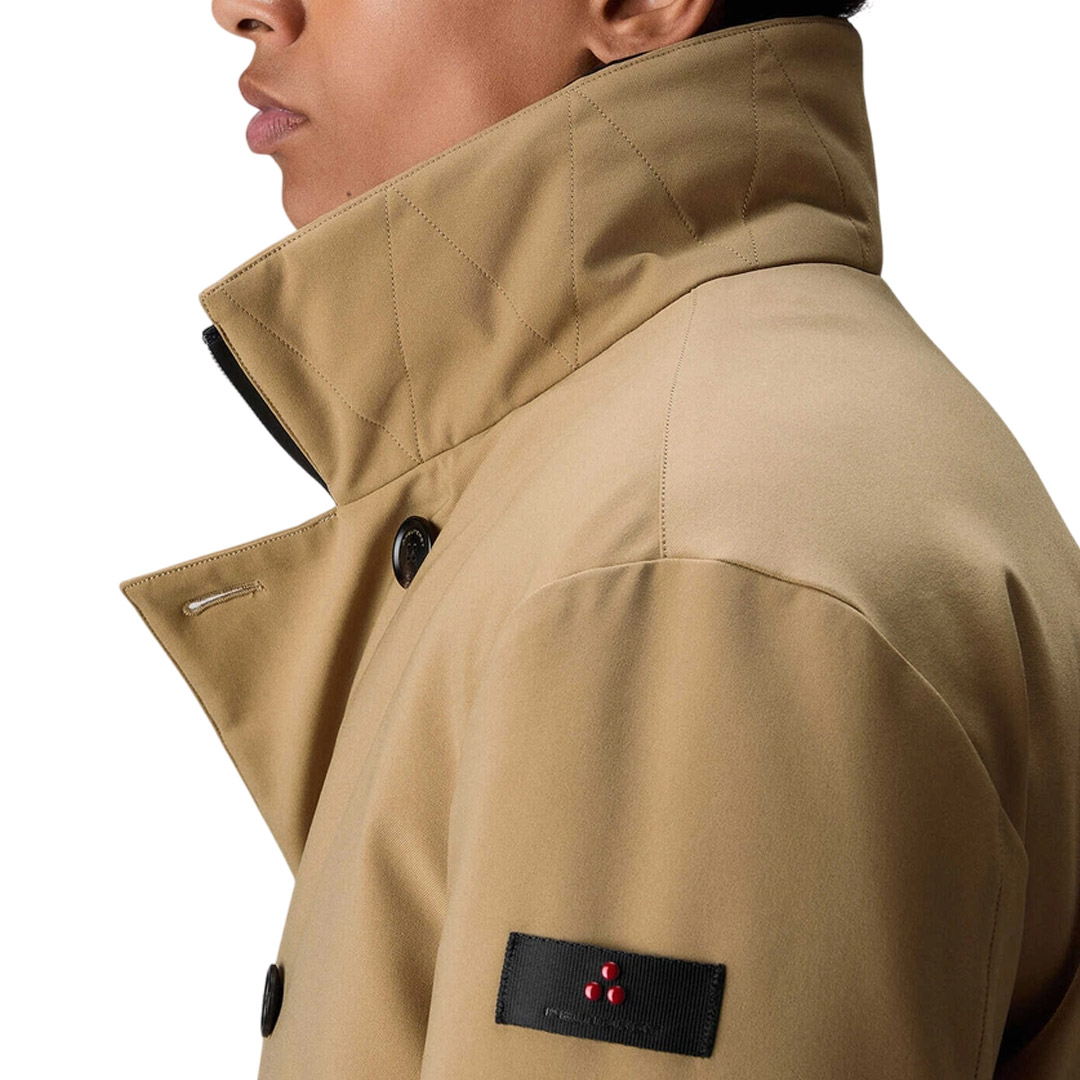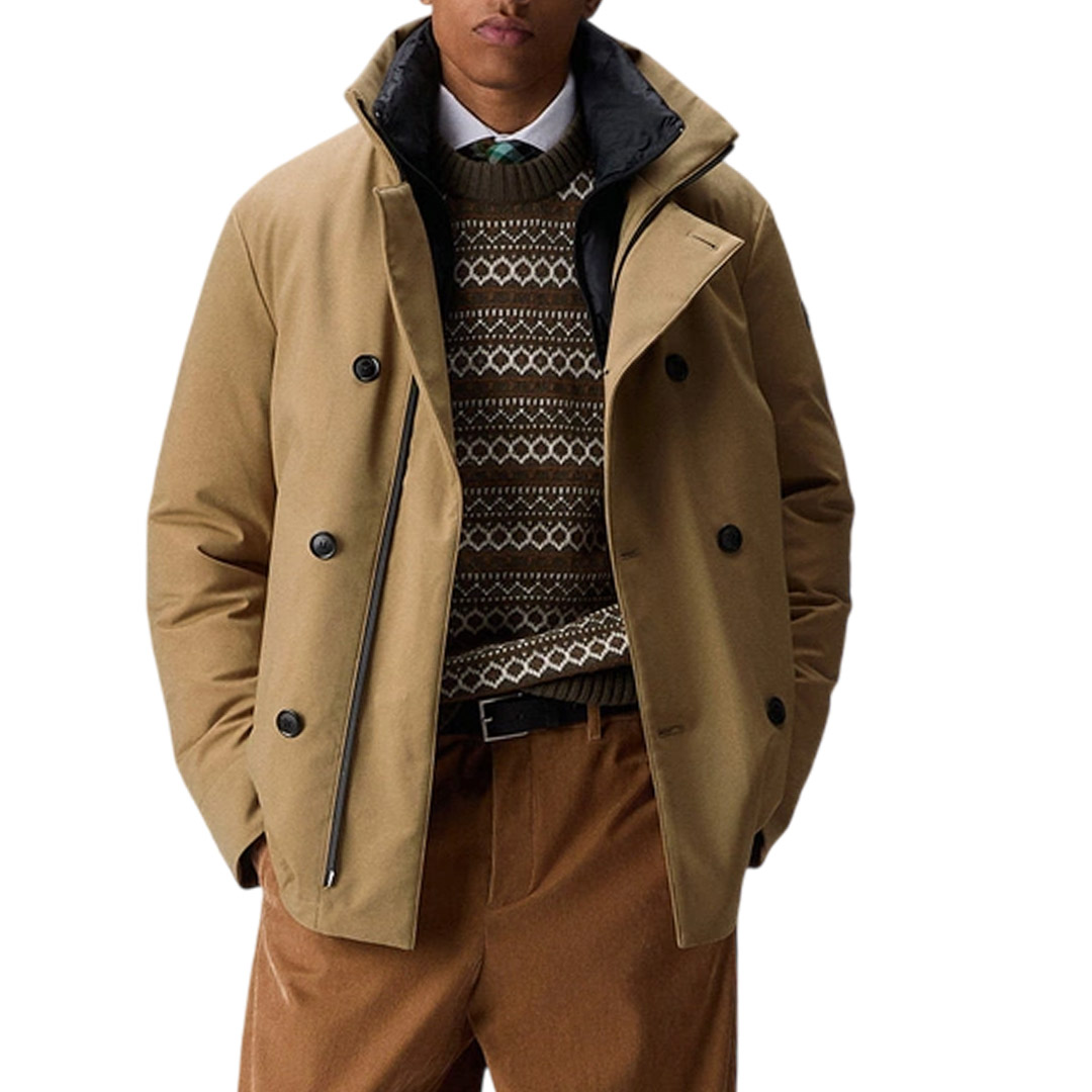 Giacca doppiopetto in tessuto stretch di poliestere riciclato con struttura twill, dall’aspetto pulito ed opaco. Il leggero coating sul rovescio dona al tessuto corpo e morbidezza, migliora la tenuta piuma e assicura proprietà antivento e idrorepellenti. La chiusura doppiopetto con bottoni e zip nera a doppio cursore nascosta si abbina al collo in piedi e alle ampie tasche laterali, definendo un design urban e contemporaneo. L’imbottitura in piuma naturale garantisce un comfort termico ideale per l’inverno Una rilettura in chiave urbana di un classico maschile, perfetta per affrontare la stagione fredda con stile e funzionalità In poliestere riciclato stretch Antivento Zip a doppio cursore nascosta Chiusura doppiopetto con bottoni Imbottitura in piuma naturale certificata Idrorepellente Vestibilità: Regular